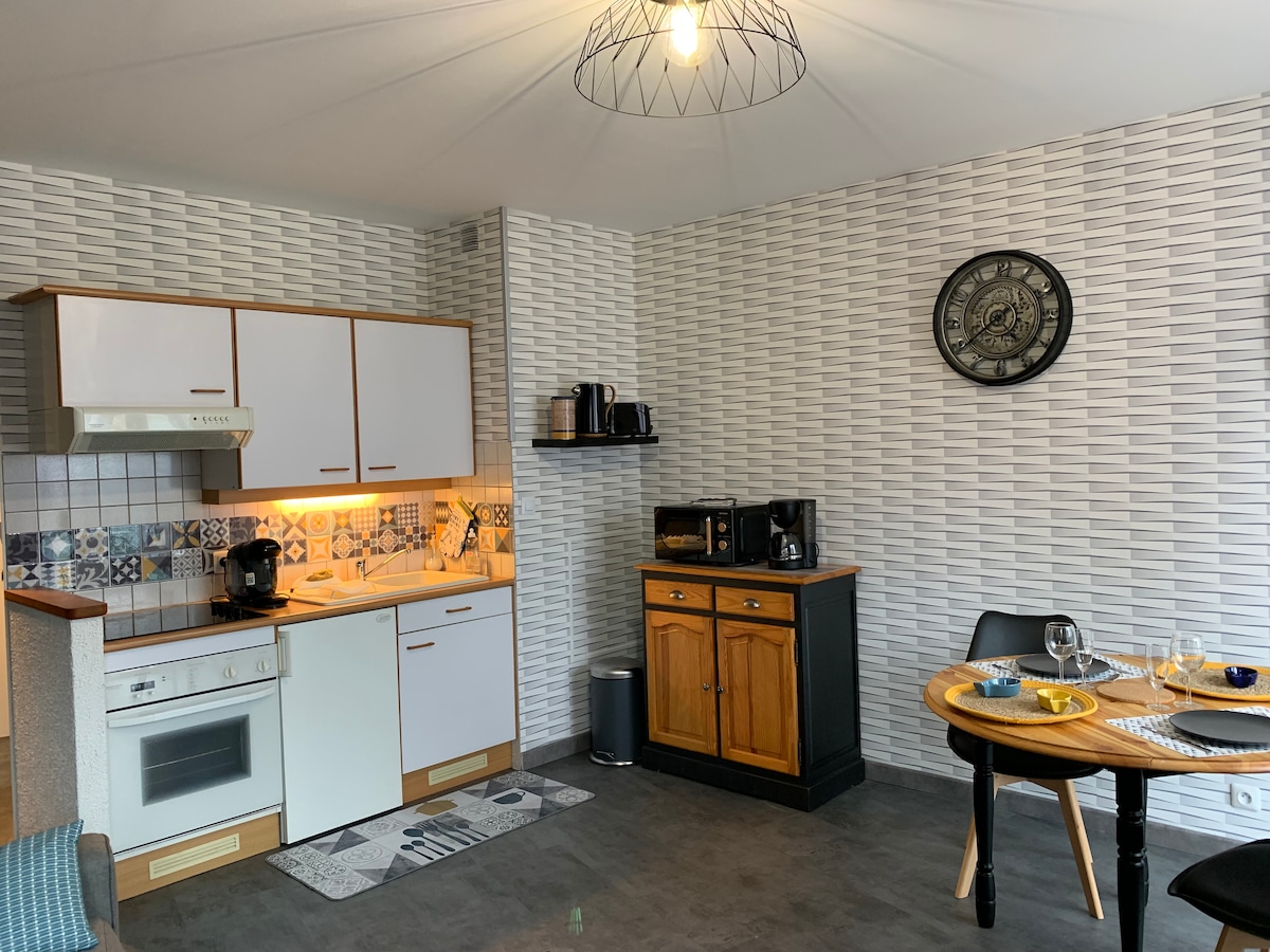 마리나에 위치한 남향 발코니와 발네오 욕조가 있는 스튜디오를 즐겨보세요. 리넨 시트가 있는 160x200 침대, 와이파이, 연결된 TV, 식기 세척기가 구비된 주방, 믹서기가 있는 유기농 원두 커피 머신, 유기농 차와 소다스트림, 신선한 현지 사과주 1병이 제공됩니다. 1인용 욕조가 구비된 욕실에서 휴식을 취하실 수 있습니다. 화장실은 분리되어 있습니다. 건물 아래에서 무료 주차가 가능합니다.