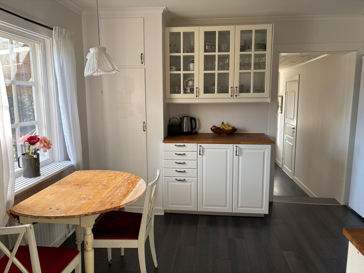 새로 개조된 1600년대 오두막에 오신 것을 환영합니다. 시골에 있는 아늑한 집입니다! 스톡홀름에서 남쪽으로 차로 약 1시간 거리에, 바그네헤라드와 뉘셰핑 사이의 해안 도로에 위치한 이 매력적인 별관은 바다의 곶에 있습니다. • 바다 전망: 물까지 100m • 유리 현관문으로 밝고, 바다 전망 • 오픈 키친과 거실 • 샤워 시설과 화장실이 있는 욕실 1개 • 2층에 화장실 1개 • 야외 공간 • 벽난로 • 대형 냉장고/냉동고, 식기 세척기, 오븐 및 전자레인지가 완비된 주방. * 새로운 가스 그릴 * 물가의 사우나 자연 해변 500m 거리.
