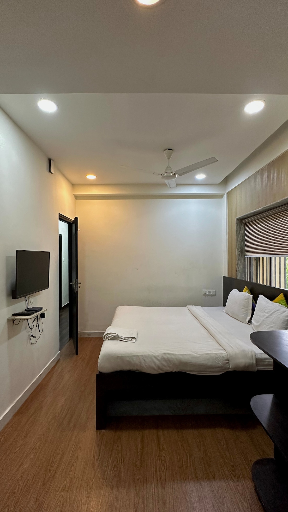 Enjoy a comfortable and flexible stay in this well-designed room featuring a double bed and a sofa cum bed, ideal for couples, friends, or small families. The room offers a cozy seating area, clean interiors, and essential amenities for a relaxed stay. Designed for both comfort and convenience, it’s perfect for short trips or extended stays, with easy sleeping arrangements and a calm, private atmosphere.