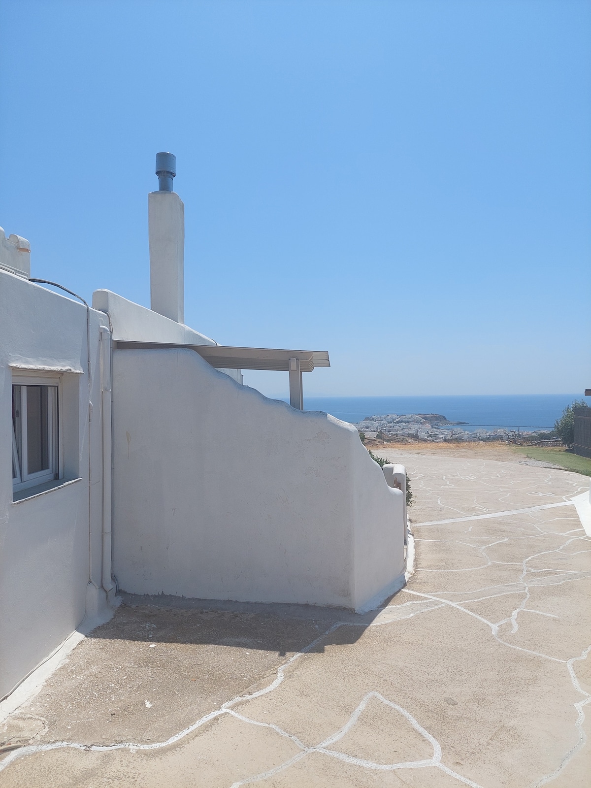 The amazing Aegean Sea views - Marble Palace is uniquely designed by a local marble carver with Tinos marble and newly renovated, TWO floor apartment in the heart of the city but very peaceful. Enjoy the Ocean Views from both balconies. Upon entering there is a beautiful shared courtyard. We are 3 minute walking distance from the downtown, shops, restaurants, and public beaches. The open concept main floor with bedrooms and bathroom upstairs. The home is fully equipped with everything you need.