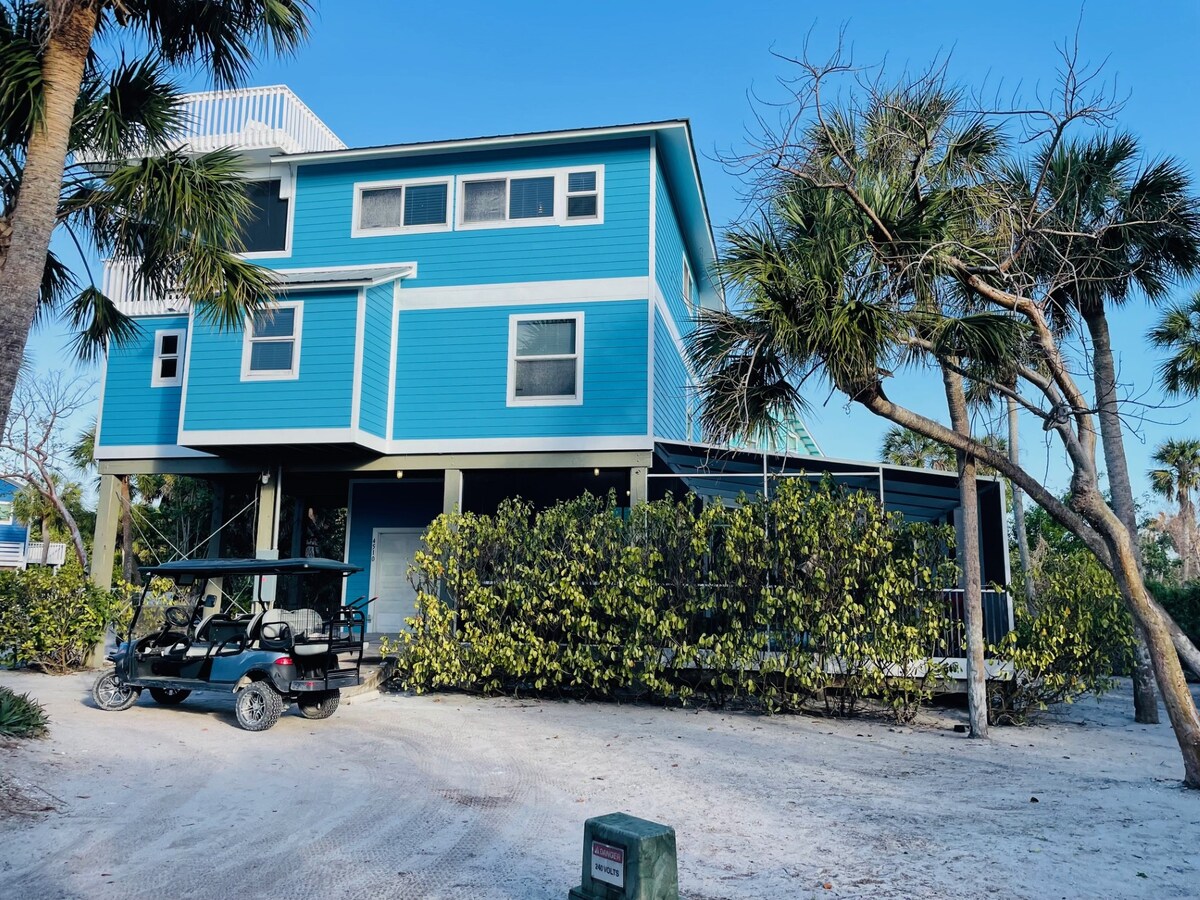 This bright, fully equipped welcoming threeβstory home features a private heated pool and a rooftop observation deck with stunning 360βdegree water views. It offers three comfortable bedrooms and three full bathrooms for up to six guests, plus two screened lanais where you can relax in the island breeze and listen to the birds. A fourβseater golf cart is included, so you can easily explore the beaches and sandy paths of beautiful North Captiva Island. Also full access to Island Club amenities!