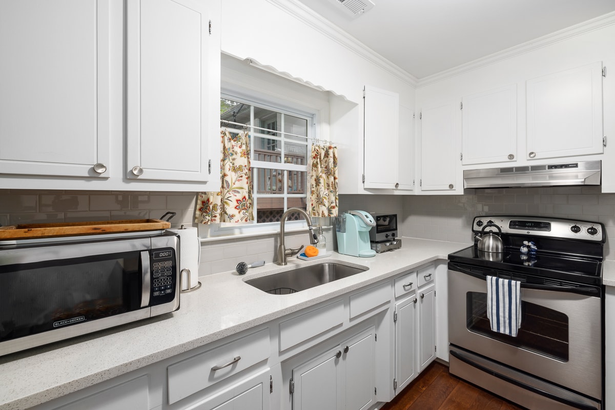 Enjoy a relaxing experience at this centrally-located, historic studio apartment. This cozy space offers tons of sunshine & an open floor plan with vaulted ceilings. Completely remodeled with new kitchen cabinets, quartz counters, stainless steel appliances and all the basics for you to enjoy your stay. Enjoy the walk-in tile shower with extra shelving for all your stuff. Plush queen-size bed. Centrally located so you can walk to parks or restaurants, or just unwind on your covered balcony.