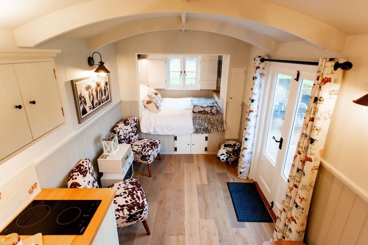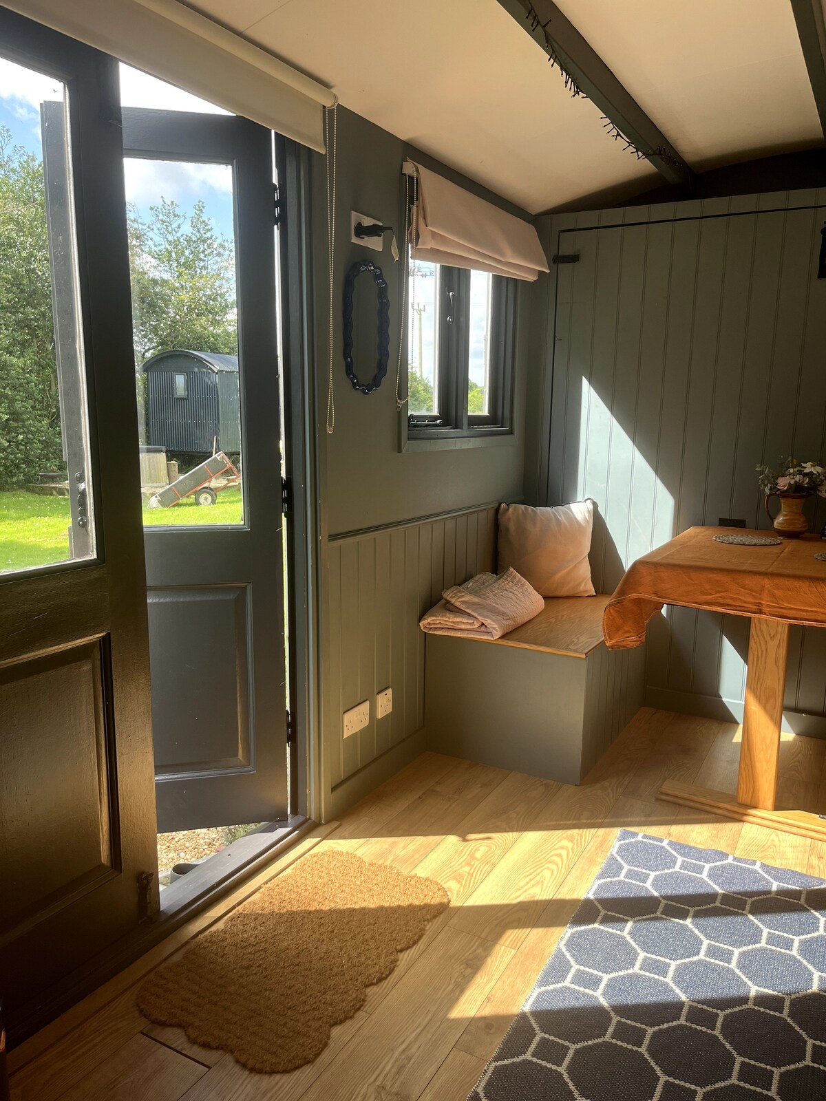 THE GARDENER - SHEPHERD'S HUT All 3 Shepherd's Huts have King size beds with en-suite shower room, washbasin, toilet including luxury toiletries. They are equipped with smart tv's, super fast Wifi, fridge kettle & microwave. Enjoy Ormesby Manor's Signature Continental Breakfast, this is included and brought to your door. The hot tub is kept at temperature throughout your stay via renewable fuels. Guests simply put their chosen time to use it privately on the blackboard