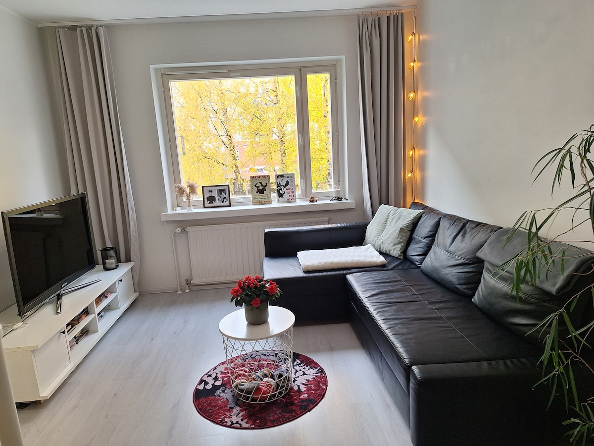 ์๋ฅ์ด ํ์ฐ์ค ํ์ชฝ, ์์ ํ ๊ฐ์กฐ๋ ์ํํธ ํฌ๊ธฐ 50ํ๋ฐฉ ๋ฏธํฐ, ๋๋ฌด๋ก ๋๋ฐฉ๋๋ ์ฌ์ฐ๋. ๊ณ ๊ฐ์ ๋ํ ํ ๋ผ์ค์ ์ผ์ธ ๊ทธ๋ฆด์ ์ด์ฉํ ์ ์์ต๋๋ค. ์ด ์ํํธ๋ 5๋ฒ ๋๋ก์ ์์นํ๊ณ ์์ต๋๋ค. ์ด๊ณณ์์ ์์๊น์ง๋ ์ฝ 6km ๊ฑฐ๋ฆฌ์ ๋๋ค. (์ฃผ์ ์ JARI-PEKKA์์). ๊ฑฐ๋ฆฌ: ๋ฐ๋ฅด์นด์ฐ์ค 20km ์ฟ ์คํผ์ค 90km ๋ฏธ์ผ๋ฆฌ 85km ์ฌ๋ณธ๋ฆฐ๋ 90km ํ์ํ ๊ฒฝ์ฐ ์์ ๊ฑฐ์ ํฌ๋ฉง์ ์ฌ์ฉํ ์ ์์ต๋๋ค. ์์์ฅ๊น์ง 3km ์ํํธ ์ฃผ๋ฐฉ์๋ ์๋ฆฌ์ ํ์ํ ๊ธฐ๋ณธ ๋๊ตฌ๊ฐ ์์ต๋๋ค.