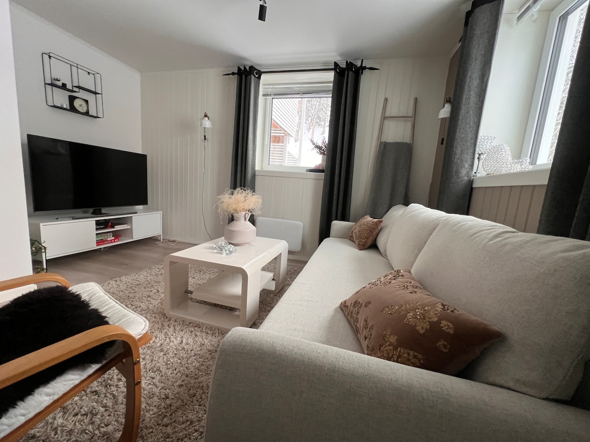 트롬쇠 시내 외곽의 베르크에 위치한 사랑스러운 작은 보석에 오신 것을 환영합니다. 편의시설이 모두 갖춰진 나만의 아파트에 살고 있습니다. 문 바로 바깥에는 평화롭게 북극광을 감상할 수 있습니다. 스키를 타거나 산에 바로 올라갈 수 있습니다. 아파트에서 도보로 5분 거리에 있는 해변을 즐겨보세요. 트롬쇠 중심부에 차로 15분 거리이며, 도시가 제공하는 모든 것을 갖추고 있습니다. 침실 2개, 거실, 욕실, 출입구, 작은 수납실이 있는 60평방미터의 신축 아파트입니다. 트럭은 숙박에 포함됩니다.