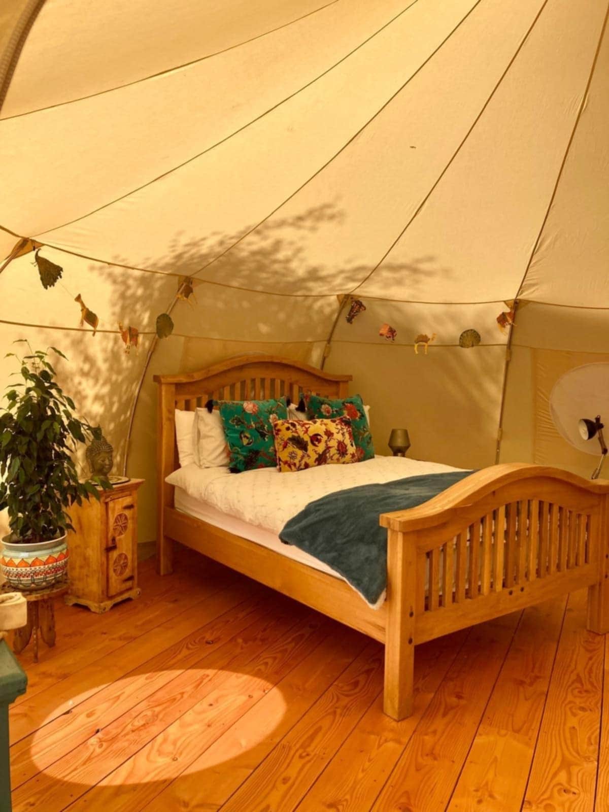 아름다운 Cerdedigion입니다. 텐트에서 바라보는 환상적인 전망. 걷기, 자전거 타기, 해변, 웨일스 성이 문 앞으로 다가옵니다. 20m 거리에 있는 현대적인 편의시설의 편안함을 갖춘 이 특이한 텐트, 들판 주방, 주변 환경의 평온한 분위기에서 자연과 함께 새들의 소리를 들어보세요. 텐트에는 카펫이 깔린 바닥에 싱글 매트리스 2개, 시트, 베개가 구비되어 있습니다. 다른 모든 침구는 게스트가 제공하는 침낭이나 이불입니다. 충전을 위한 전등과 전기.