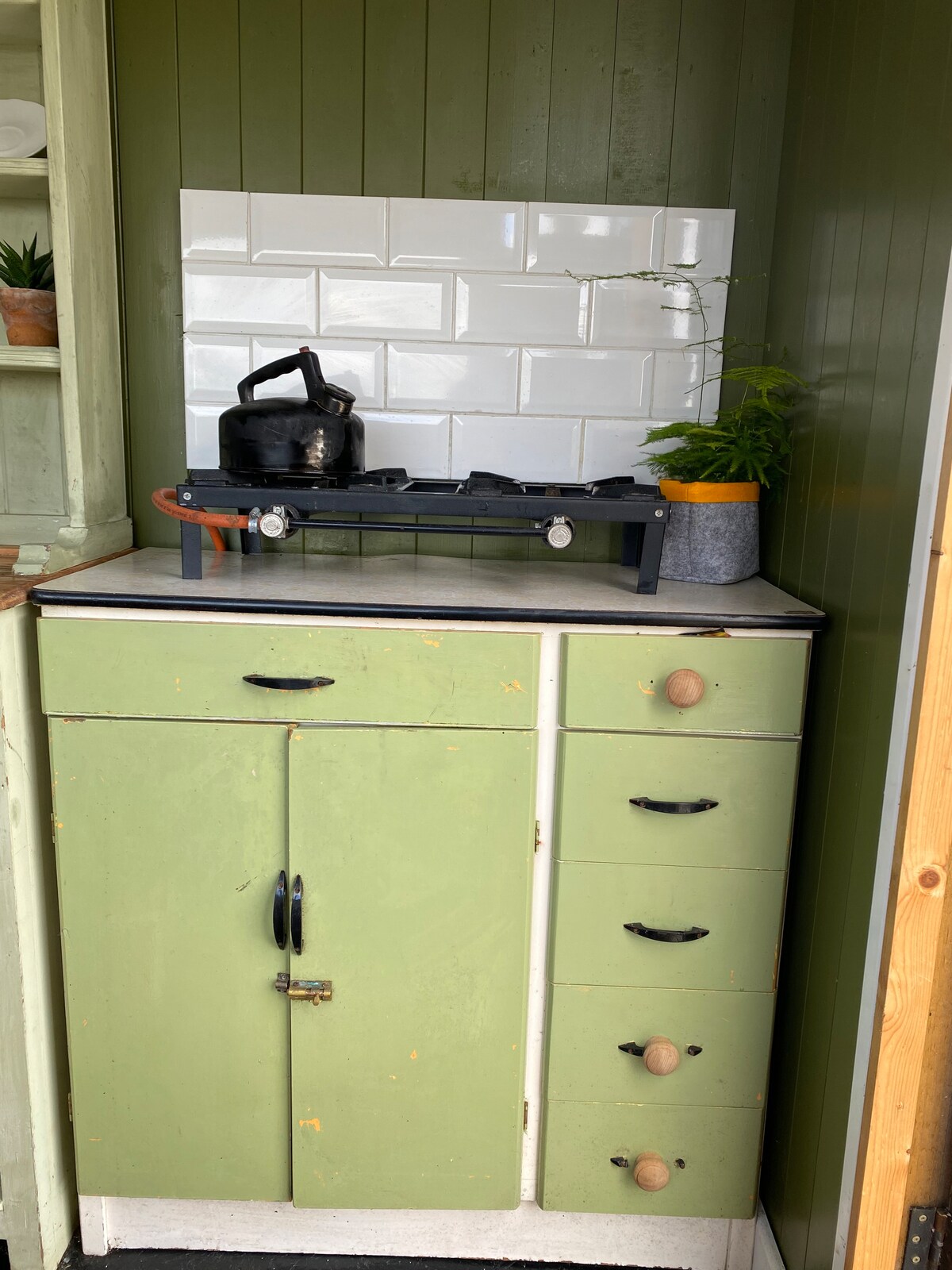 A truly unique little spot, surrounded by our horses. Quirky, nature filled little escape on our rustic farm. Untether from the fast pace of life, even with excellent transport links close-by. Overlook our fields and views of the horses and greenery. Shared glamping bathroom and kitchen facilities. Enjoy the firepit outside and the cosy views inside. Adult only.