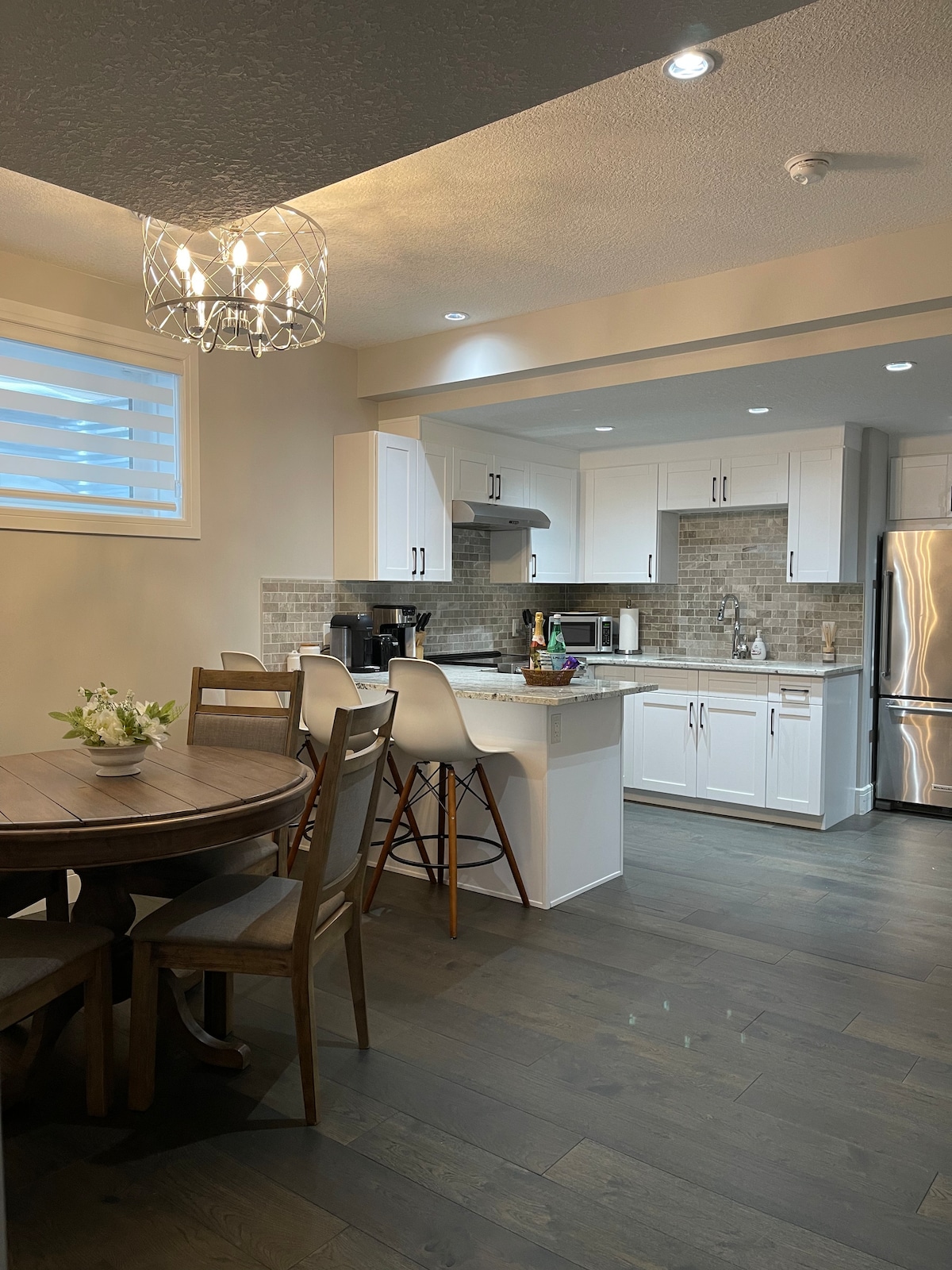 🏡 주요 특징 ✔️ 밝고 티 없이 깨끗한 합법적인 지하 스위트 퀸사이즈 침대와 호텔 스타일의 침구가 있는 침실✔️ 2개 ✔️ 5번째 게스트 전용 일본식 푸톤 – 요청 시 추가 사용 ✔️ 우유가 있는 주방 큐리그 커피 메이커 58인치 ✔️스마트 TV가 있는✔️ 아늑한 거실 세련된 실내 행잉 체어 ✔️ 전용 출입구 및 간편한 셀프 체크인 ✔️ 도로변 또는 진입로 무료 주차 📍 근처에요 쇼핑센터까지 차로✔️ 2분 ✔️ 래빗 힐 스키 리조트까지 차로 15분 에드먼턴 국제공항(YEG)까지 차로✔️ 20분 WEM까지 차로✔️ 20분