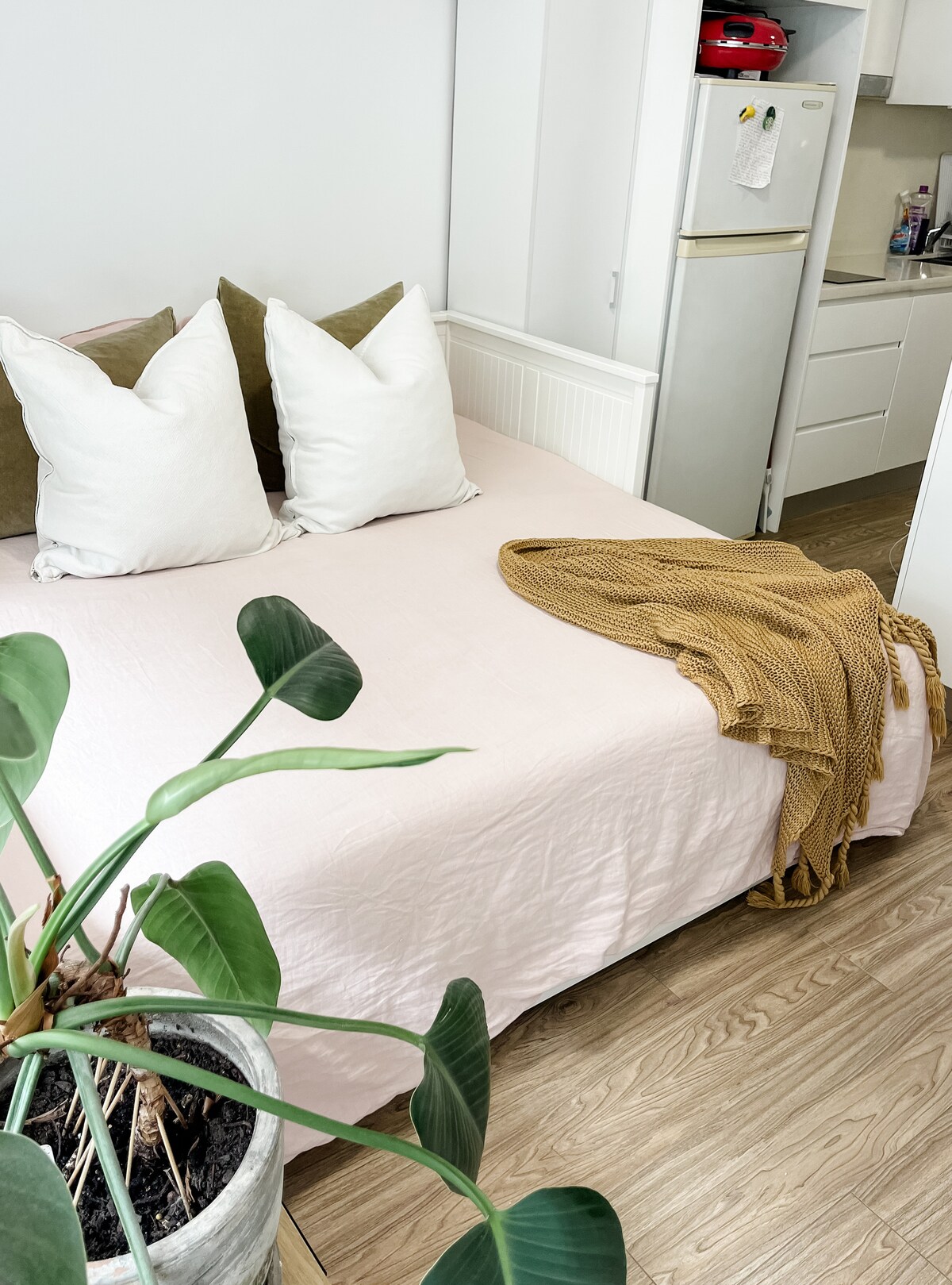 숙소 뒤편에 위치한 그래니 플랫은 대중교통, 카페, 레스토랑, 편의점까지 도보 거리 내에 있는 조용한 동네에 있습니다. 평평한 산책로를 따라 디 화이 해변까지 도보로 40분, 제공되는 푸시 자전거를 사용하면 15분 거리입니다. 숙소에는 전용 출입구가 있으며 완전히 자립적인 침대 공간입니다. 퀸사이즈 침대가 있는 대형 객실, 샤워 변기와 세면대가 있는 전용 욕실. 주방에는 전자레인지, 오븐, 스토브 탑, 냉장고/냉동고가 있습니다. 스마트 TV가 있습니다.