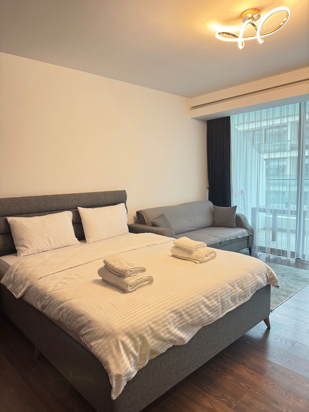 Our studio apartment at the popular Royal Life Residence is located in the İskele Long Beach area. Our studio apartment boasts amenities such as a swimming pool, a water park, a playground, and a snack bar. It's within walking distance of the beach, supermarket, pharmacy, hairdresser, restaurants, and bars. Our apartment features a fully equipped kitchen, one double bed, one single bed, a smart TV (YouTube, Netflix, Prime TV), free Wi-Fi, air conditioning, and mosquito nets on the windows.