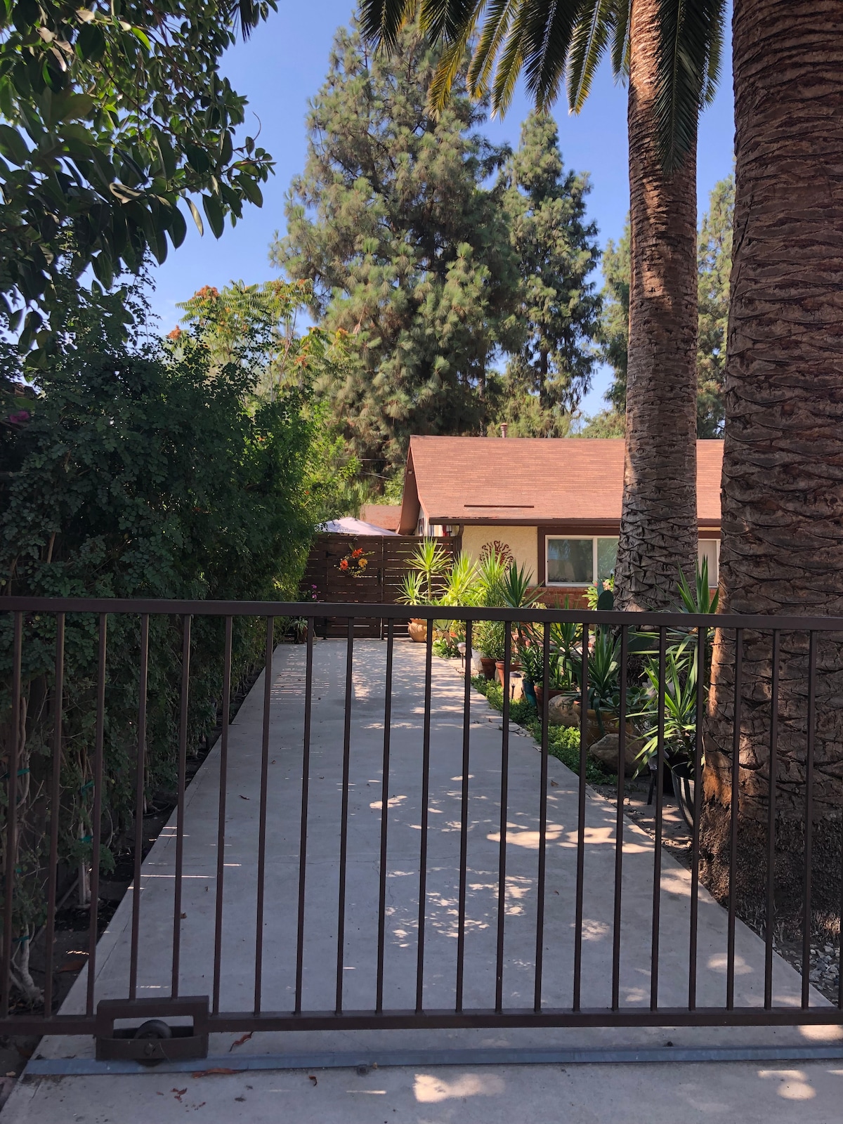 This is a gorgeous 500 sq foot pool house with chef’s kitchen. Full access to pool, spa, outdoor kitchen and all the various garden areas on 1/3 of an acre. It is a large detached studio great for up to 2 guests. It’s located on a quiet cul de sac. If you’d like to have a special event or film on the property, we charge on a hourly basis depending on the number of guests and event type.