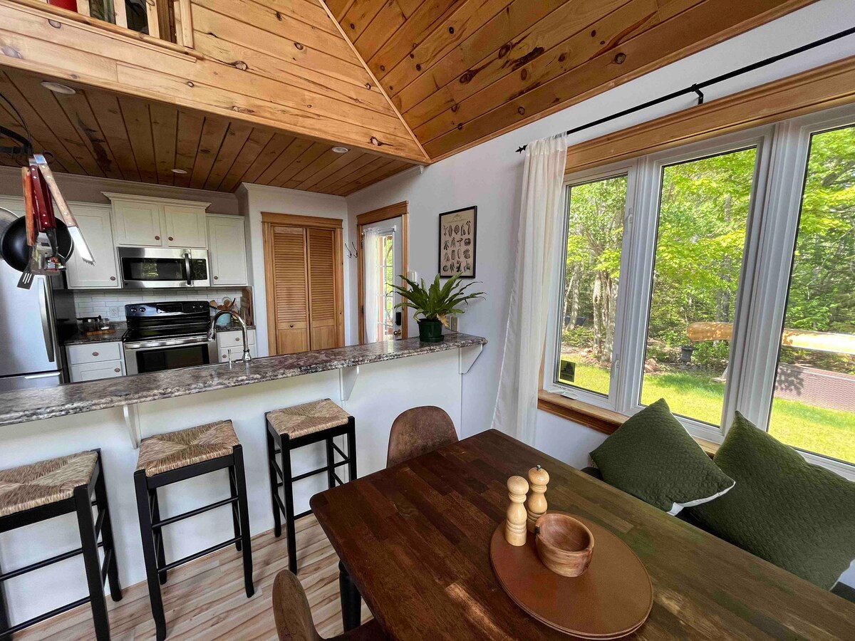 Recently updated chalet in the woods, 3 minutes from Ski Wentworth. The perfect retreat to unwind after a day outdoors; skiing, biking or hiking. Nestled amongst 6 acres of pine trees descending to the Wallace River, imagine morning yoga in the loft, relaxing by the wood stove or a bonfire under the stars. All the amenities you need for a luxurious getaway. Whether you are spending time indoor or outdoors, you will fall in love with all this place has to offer!