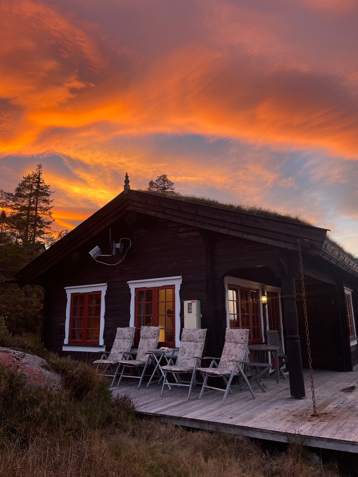 Moderne tรธmmerhytte med badstue, ved turlรธyper