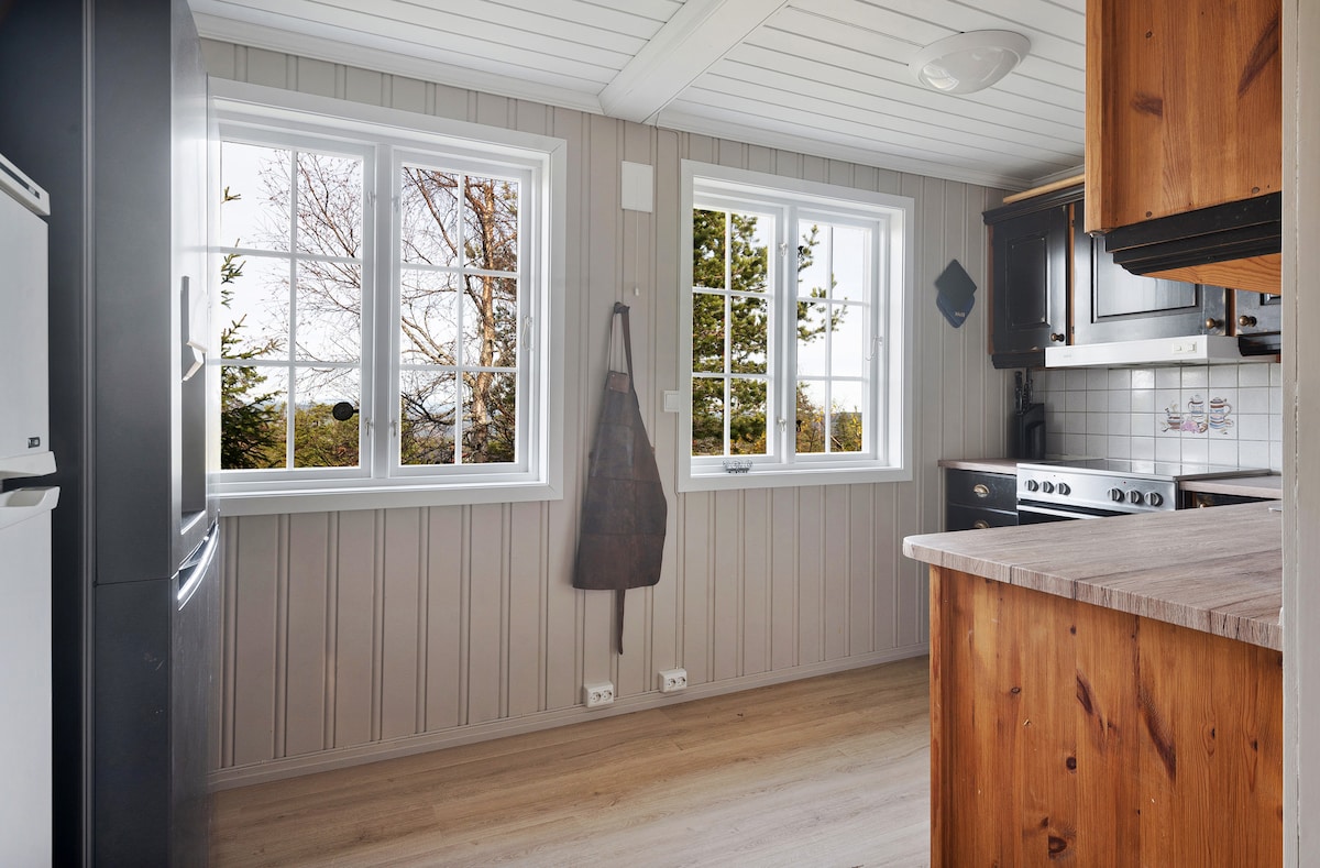 블레피엘 산기슭에 있는 11인용 통나무집. 오슬로에서 단 70분 거리에 있습니다. 2 ~ 3가족에게 추천합니다. 오두막까지 올라가는 자동차 도로, 바닥 난방, 식기세척기, 벽난로. 환상적인 하이킹 기회까지 6분 거리이며, 수영할 수 있는 해변까지 12~13분 거리입니다. 일 년 내내 즐길 수 있는 액티비티. 오두막에는 나무 오두막, 썰매 언덕, 그네, 슬랙라인, 밸런스 트레일, 30미터 지프라인이 있습니다. 대형 테라스와 조명, 정원 가구, 가스 그릴, 화덕이 있는 새롭게 지어진 야외 거실. 콩스베르그와 은광산에서 20분 거리