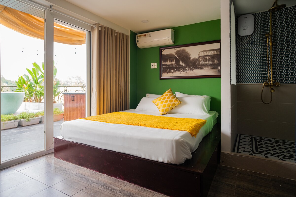 Our amazing 1 bedroom apartment is located in the heart of the city! The expansive space has 3.8 meter high ceilings, two large balconies, and lots of sunlight. Amenities include: -King bed & big dining table -Blazing fast internet (200+Mbps) -Fully equipped kitchen -Unlimited drinking water -Smart TV + Netflix -Bluetooth speaker -Rain shower and toilet bidet -Free coffee bar We're a short walk to Nguyen Hue so you'll be close to the best restaurants, cafes, shopping and nightlife in Saigon!