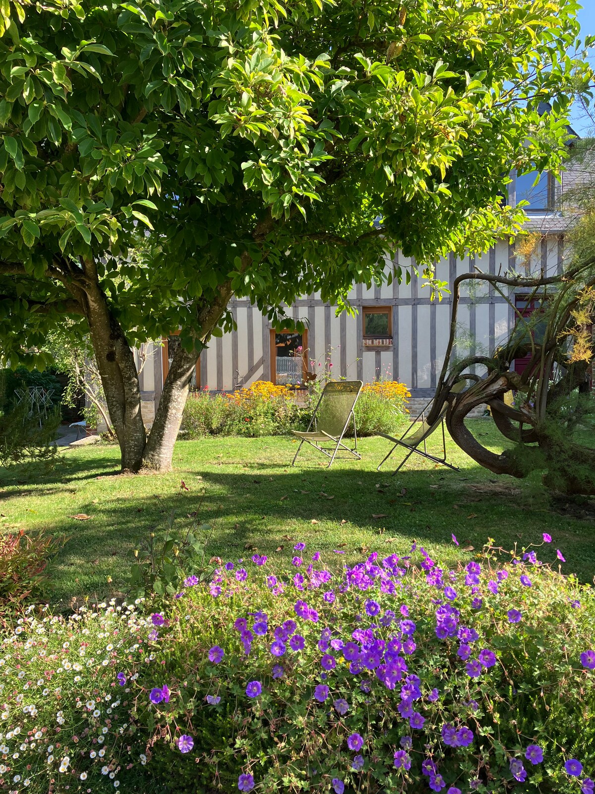 Le Prรฉ Fleuri ร quelques minutes des plages et des commerces, Le Prรฉ Fleuri est un cottage de charme oรน rรจgnent calme et douceur de vivre. Nichรฉ dans la campagne du Pays dโAuge, ce gรฎte de plain-pied invite ร la dรฉtente : admirez les couchers de soleil sous les pommiers, รฉcoutez le chant des oiseaux, croisez vaches et รฉcureuils au dรฉtour dโune promenade. Un lieu paisible, idรฉal pour se ressourcer en couple ou en famille.