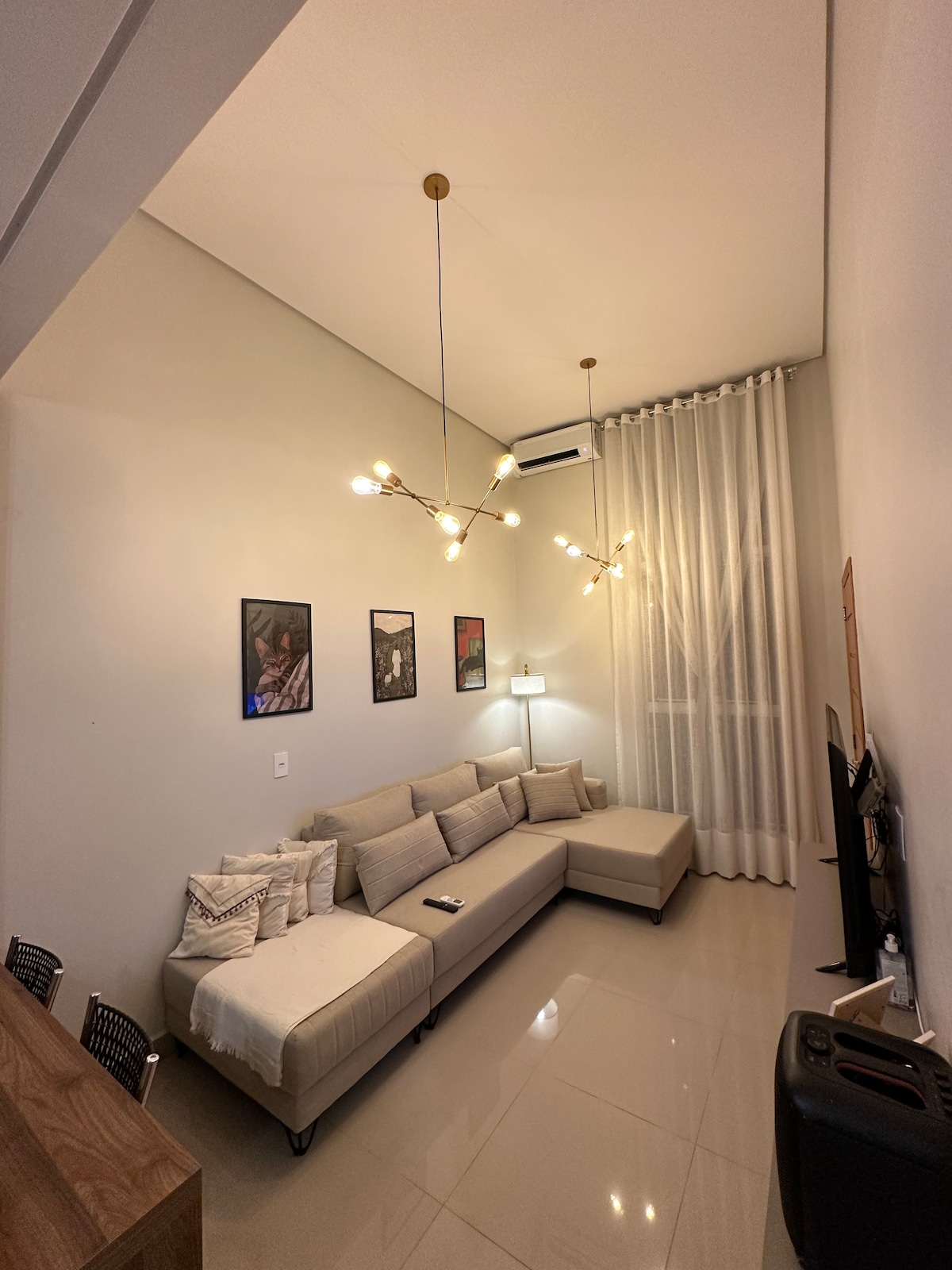 Relaxe neste espaço calmo e cheio de estilo. A casa é moderna, possui: - 1 quarto (com uma cama queen) e ar condicionado. - 1 closet com 1 mesa de escritório. - Cozinha com utensílios COMPLETO (fogão cooktop 5 bocas, forno elétrico, micro-ondas e geladeira) e ar condicionado. - Sala com um sofá retrátil, um painel e uma tv smart. - Internet. - Lavanderia com tanque e maquina de lavar. - Banheiro. - Não possui vaga de garagem.