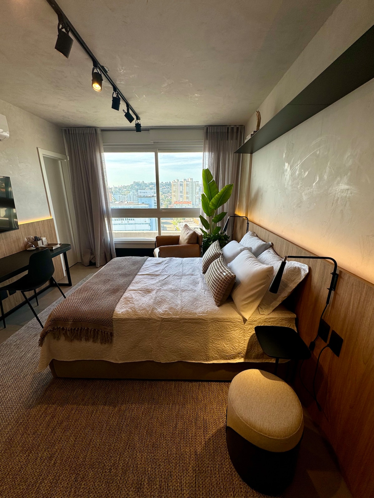 13층에 위치한 새롭고 현대적인 스튜디오로, 편안함과 편리함을 제공하도록 설계되었습니다. 미니멀하고 아늑한 인테리어로 커플, 출장 또는 레저 여행에 적합합니다. 위치는 차별화된 위치입니다. 노보 함부르고 중심가에 위치하고 있으며, FENAC, 버번 하이퍼마켓, 쇼핑, 기차역 및 버스 정류장에 가깝습니다. 포르투알레그레에서 40분, 그라마도에서 1시간 30분 거리에 있습니다. 이곳에는 편안한 숙박을 위해 필요한 모든 것이 있습니다. 슈퍼호스트 앰배서더가 되신 것을 축하합니다!✨