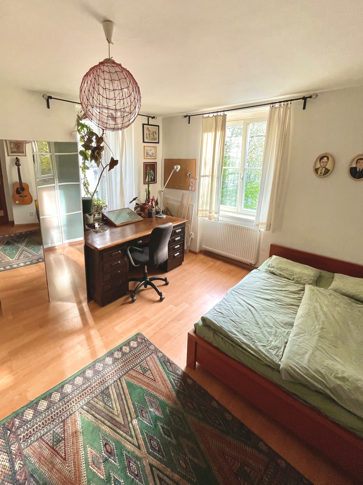 There is a hall connected to every room - two bedrooms, bathroom and big livingroom with kitchen. It's big, roomy and quiet flat with a lot of storage places for your luggages and clothes. There are two bedrooms, so to fully use potencial of this apartment its best for family, group of friends or two couples, but ofcourse its up to you and feel free to come alone. Full access to every room of the apartment. You will always have the whole apartment for yourselves, so it provides complete privacy. I always keep my phone on and im ready to help you with any situation or answer any questions. And if its needed I will come to help personally. One of the biggest shopping malls is 2 minutes away by foot, and the apartment is surrounded by restaurants, pubs, coffee shops, and clubs. It's possible to go for a nice walk or use city transfer to get easily anywhere in Prague. City transfer is very close! Every possible city transport is in walking distance - underground, tram stations, buses and even taxi's on the street. Animals allowed! If you have your pet, do not hesitate to take him with you, there is a dog bed in the hall ready. Building has an elevator, so you won't have to walk up the staires.