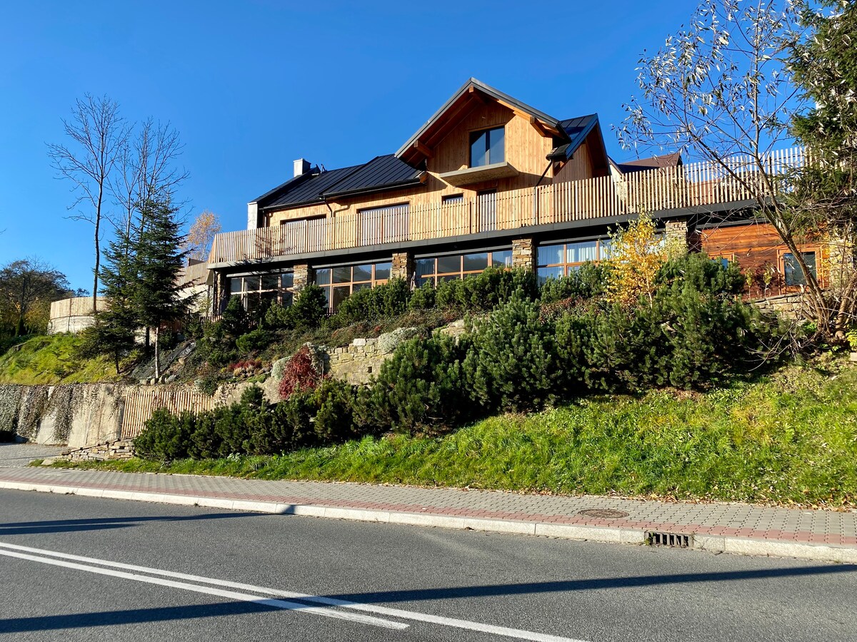 Relax with your family in this peaceful place. Feel like you are at the cloud level, or rather at top of a mountain with a spectacular view of the surrounding area. The outdoor terrace with a hot tub makes it the perfect place to relax after hiking. It is a year-round, fenced house, 76 sq m with two bedrooms, bathroom, main room with a fireplace, a fully equipped kitchen, two parking spaces (one with a Tesla AC charger (t2)).