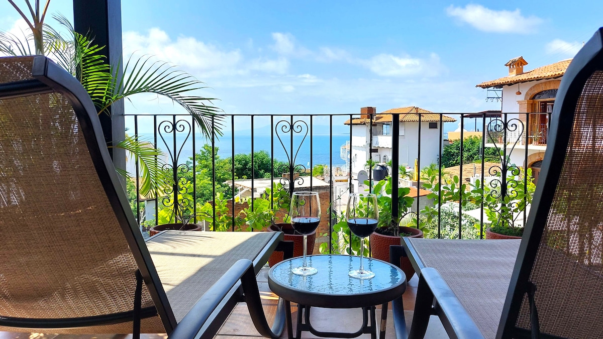 A Guest Favorite consistently ranked among the top-rated stays worldwide, Miguel's Mirador is Villa Amistad's crown jewel โ a premium top-floor studio with stunning views of Banderas Bay and the Pacific horizon. Your private terrace with hammock, lounge seating, and unforgettable sunsets is waiting.