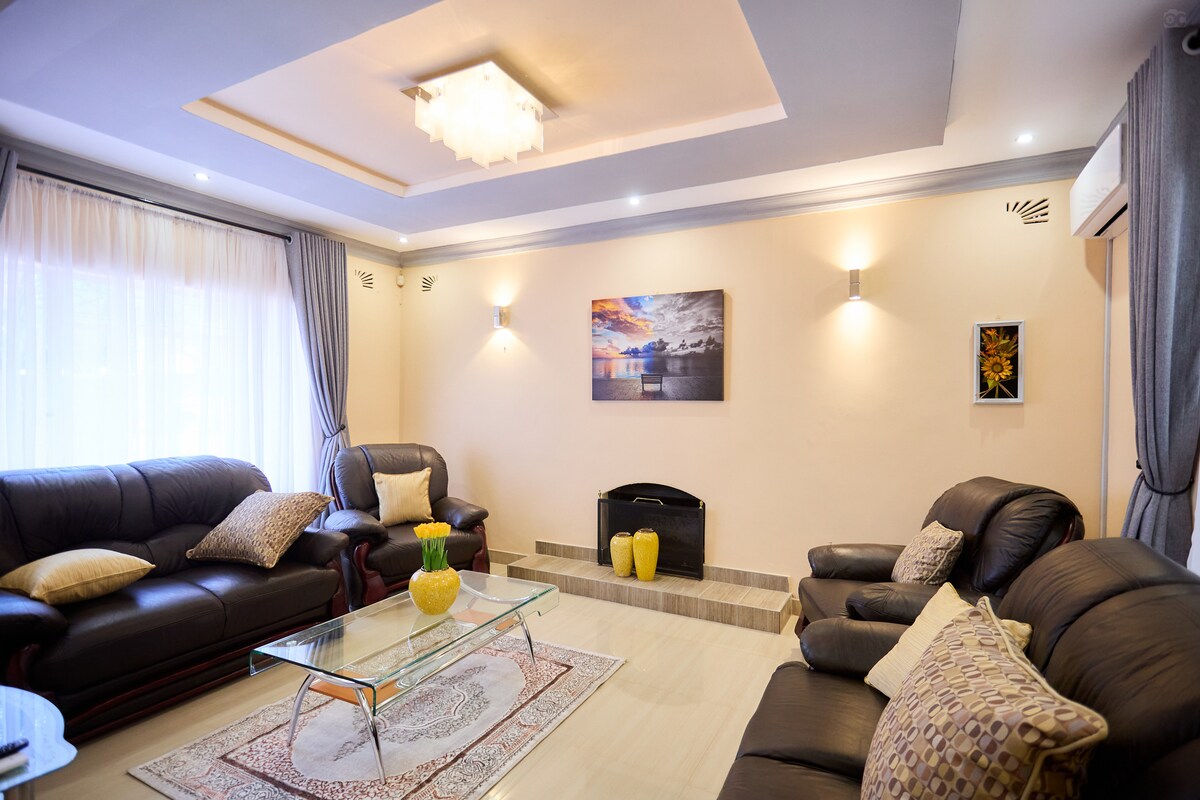 This Four-bedroom, four-bathroom apartment with a pool has been designed for comfort, convenience, and relaxation! Please note that we do not allow events or parties of any sort. Our house is perfect for families, business or similar groups. It is located in a complex of two units and a quiet neighbourhood so noise is not tolerated. With space for eight guests, this modern home has everything you'll need. Enjoy world-class restaurants in Borrowdale , or head to the new Highland Park Mall.
