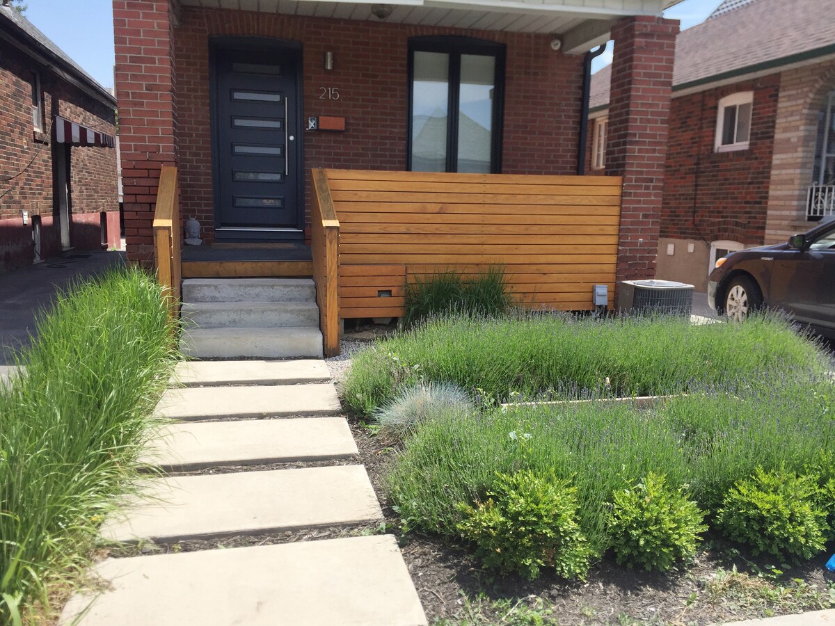 미드타운의 트렌디한 세인트 클레어 웨스트 지역에 위치한 밝고 깨끗하며 넓은 저층 게스트 스위트입니다. 클레어 웨스트 동네. 저희 스위트는 도시를 둘러보고 명소를 감상하고 싶은 성인, 프라이버시와 편안한 업무 공간을 원하는 출장자 또는 친척을 방문하는 가족에게 가장 적합합니다. 필요한 편의시설과 기대하지 못했던 편의시설을 제공합니다. 퀸사이즈 침대가 있는 미드 모드 스타일의 침실은 트렌디한 현지 레스토랑을 방문한 후 머리를 식힐 수 있는 좋은 숙소입니다.