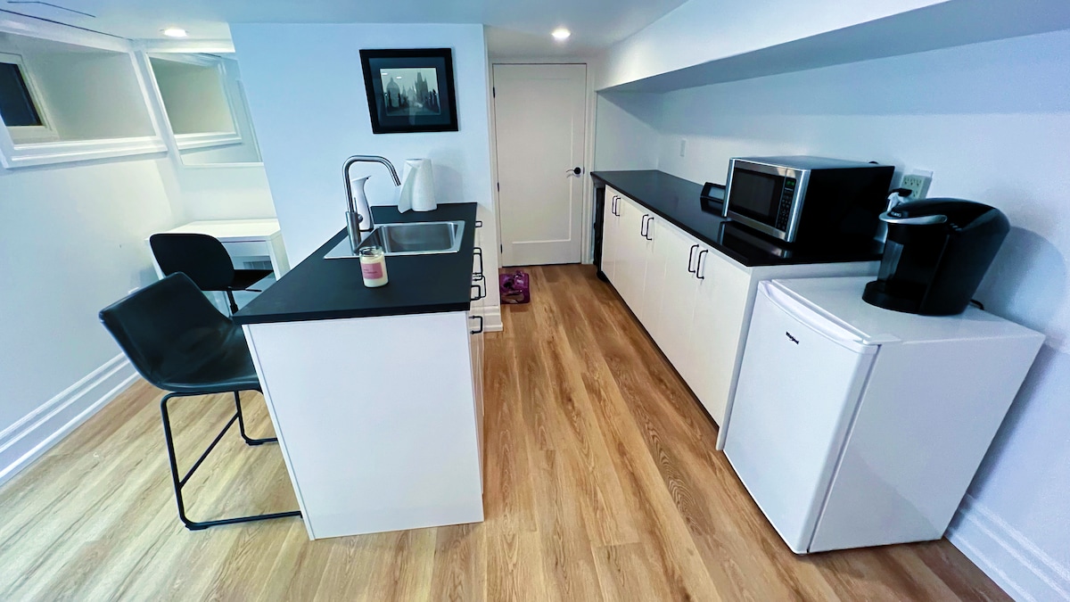 이 개방형 콘셉트 스튜디오 스위트는 출장 및 가족 및 친구와 함께 방문하기에 좋습니다. 뒷마당을 통해 들어갈 수 있는 낮은 층. 단기 숙박에 필요한 모든 시설이 완비되어 있습니다. 요청 시 체크인/체크아웃 시간 조정 가능. *토론토 시청에서 노상 주차 허가를 받을 수 있습니다.
