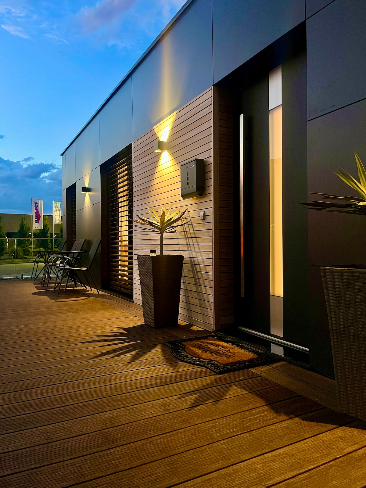 Dein Zimmer ist im Glamour Stil mit modernen goldenen Akzenten eingerichtet. Das 35m² Studio enthält ein BOXSPRINGBETT, SMART-TV mit gratis NETFLIX & WIFI, Küchenzeile + NESPRESSO und kostenlose Parkplätze. Das Appartement befindet sich im Hotelturm - Wahrzeichen & höchstes Gebäude Augsburgs, fußläufig in die Innenstadt (10/15 min) + zum HBF. Du wohnst in einer der höchsten Etagen. Genieße bei schönem Wetter den Blick über Augsburgs Alpen.