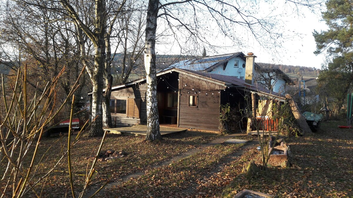Schönes Holzhaus im Spessart mit Anbindung an verschiedene Rad- und Wanderwege (Spessartbogen). Kamin, Grill, Terasse und Garten laden zum Entspannen ein. Unterbringung für Kleingruppen, Fahrzeuge oder Pferde auf Anfrage möglich. Im Winter lockt der Holzofen mit wohliger Wärme. Herzlich willkommen.