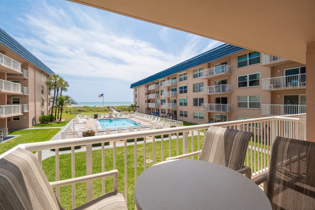 Steps from the sand! Upscale and spacious 1 bedroom, 1 bath suite. Breathtaking ocean views from every angle including triple glass slider, balcony, and oversized bedroom windows! See and feel rocket launches from the private balcony. Perfect for aquatic adventurers or close-knit friends. Tastefully appointed and newly renovated, expect an idyllic location for on-the-water fun with luxury for up to 4 guests Near Disney/Orlando Airport, Kennedy Space Center, Port Canaveral, Cocoa,Melbourne