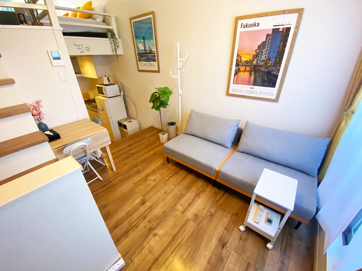하카타역-후쿠오카 공항 차로 5분/최대 6명까지 숙박/도보로 돈키호테, 편의점 이용 가능