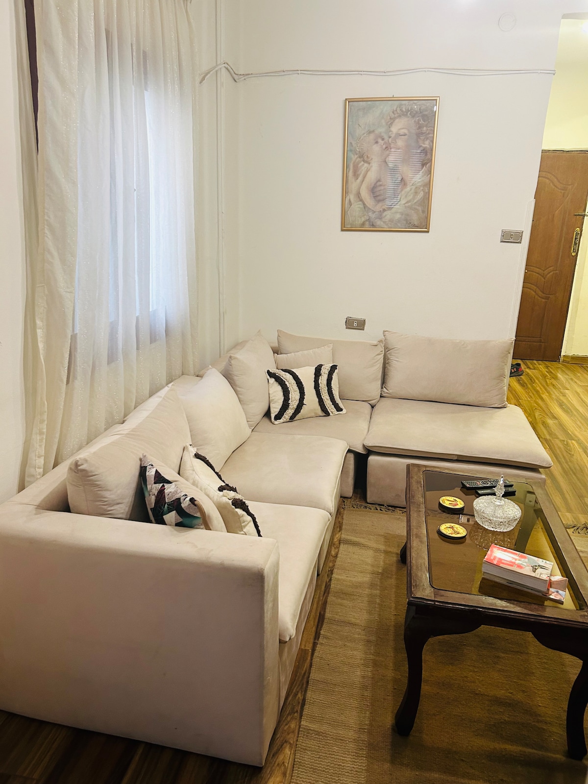 Discover Cairo from my cozy downtown apartment! Nestled in a serene local neighborhood, newly furnished retreat offers convenience and comfort. Just 5 minutes from Saad Zaghloul Metro Station and the Institut Français d'Égypte au Caire, and steps away from the popular Halawa Cafe. Enjoy complimentary access to a GYM and a VIP gaming room, plus a free area tour. Relax in the inviting living room, catch up on TV, and cook in the equipped kitchen. With 2 beds, rest easy for a memorable stay!