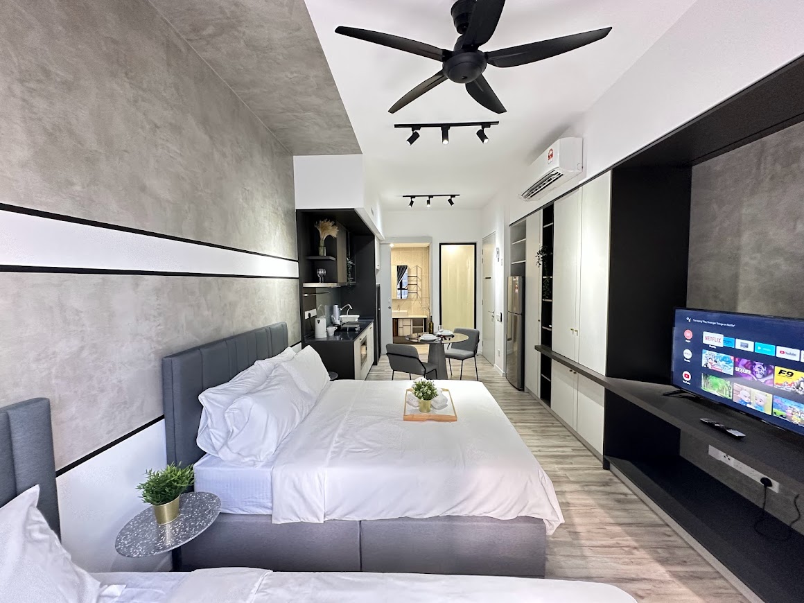 📍Pertama Residency Welcome to Grey City! 이 스튜디오는 현대적인 인테리어와 현대적인 편의시설이 어우러져 새롭게 꾸며져 있으며, 넷플릭스가 있는 사랑과 100인치 프로젝터 스크린으로 특히 자쿠지의 순간을 즐길 수 있습니다. 이 독특한 숙소는 모든 것을 갖추고 있으며, 커플을 위한 아늑하고 깨끗하고 조용하며 상쾌한 숙박 환경을 제공합니다. 그레이 시티에 오셔서 경험하세요! 곧 뵙겠습니다.