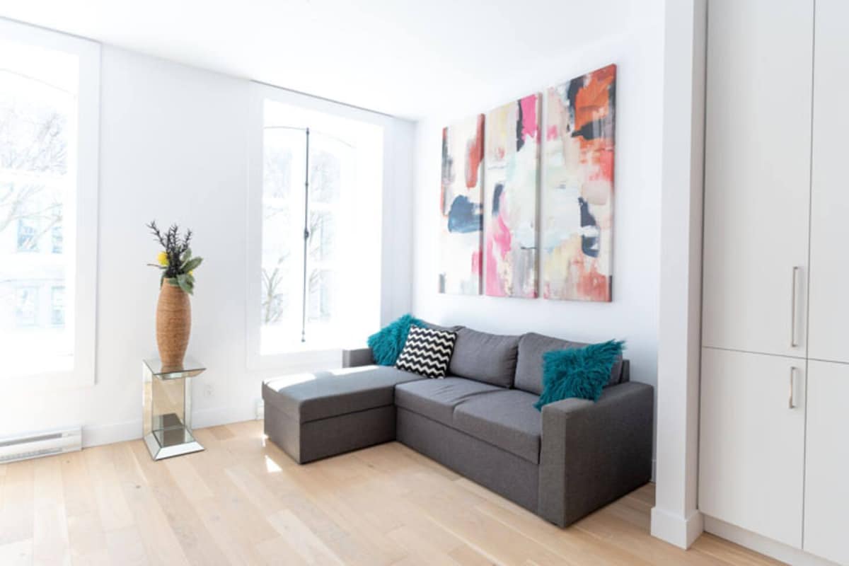 Located in the center of Old Quebec, this magnificent 900 sq.ft. has a private entrance. You will be charmed by the historical aspect of the stones wall as well as the tranquility of the housing. Queen bed (bedroom) and a sofa-bed (living room). Modern and chic decor.