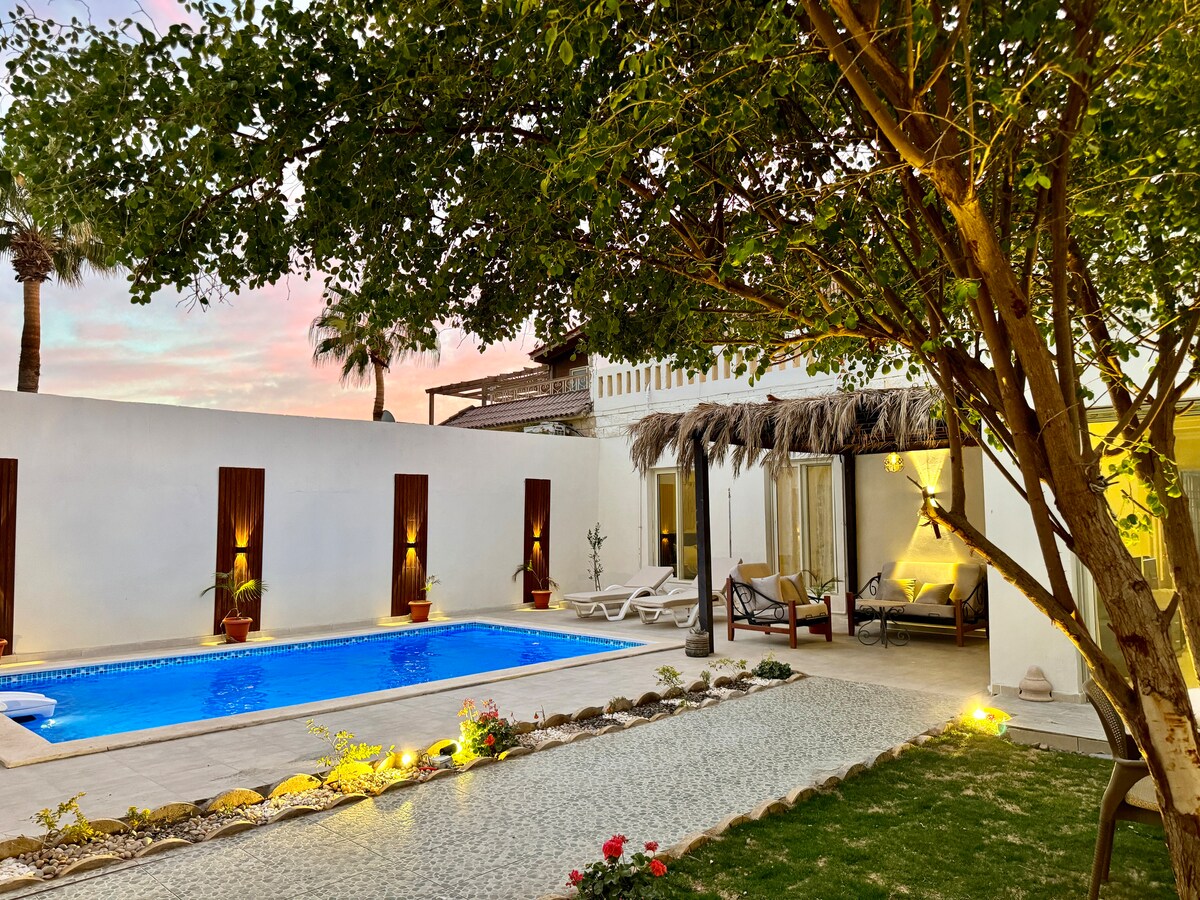 후르하다의 놀라우면서도 독특한 숙소로, 가족 여행에 적합한 휴가용 숙소이거나 신혼여행자를 위한 낭만적인 휴양지로, 전용 대형 수영장이 있으며, 공유하는 것은 없습니다. 넓은 거실, 오픈형 주방, 장난감 코너 위층에는 샤워기가 있는 마스터 침실 욕실과 킹사이즈 침대, 이층 침대, 플레이스테이션5가 있는 침실이 있습니다. 큰 자쿠지를 갖춘 욕실에서 완전히 휴식을 취할 수 있습니다. 빌라에는 필요한 모든 것이 완비되어 있습니다. 여러분을 맞이하고 멋진 숙박을 선사하며 여행을 준비해 드리겠습니다.