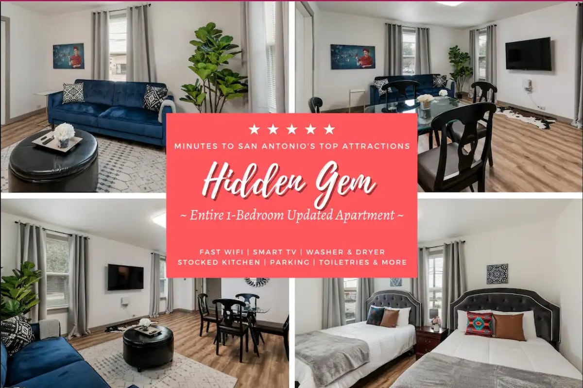 테렐 힐즈의 조용한 동네에 위치한 중심부에 있는 이 스위트에 머물면 모든 것에 가까이 있을 것입니다! 이 현대적인 게스트 스위트에 머물며 조절 가능한 베이스가 있는 고급 메모리 폼 매트리스에서 편안하게 잠을 잘 수 있습니다. 레인폴 샤워기 아래 아름답게 업데이트된 샤워실에서 상쾌한 시간을 보내세요! 여러분을 호스팅하고 싶습니다! 샘 휴스턴 요새, 펄, 샌안토니오 동물원, 비테 박물관, 도세움, 양조장, 샌안토니오의 모든 것에서 몇 분 거리에 있습니다.