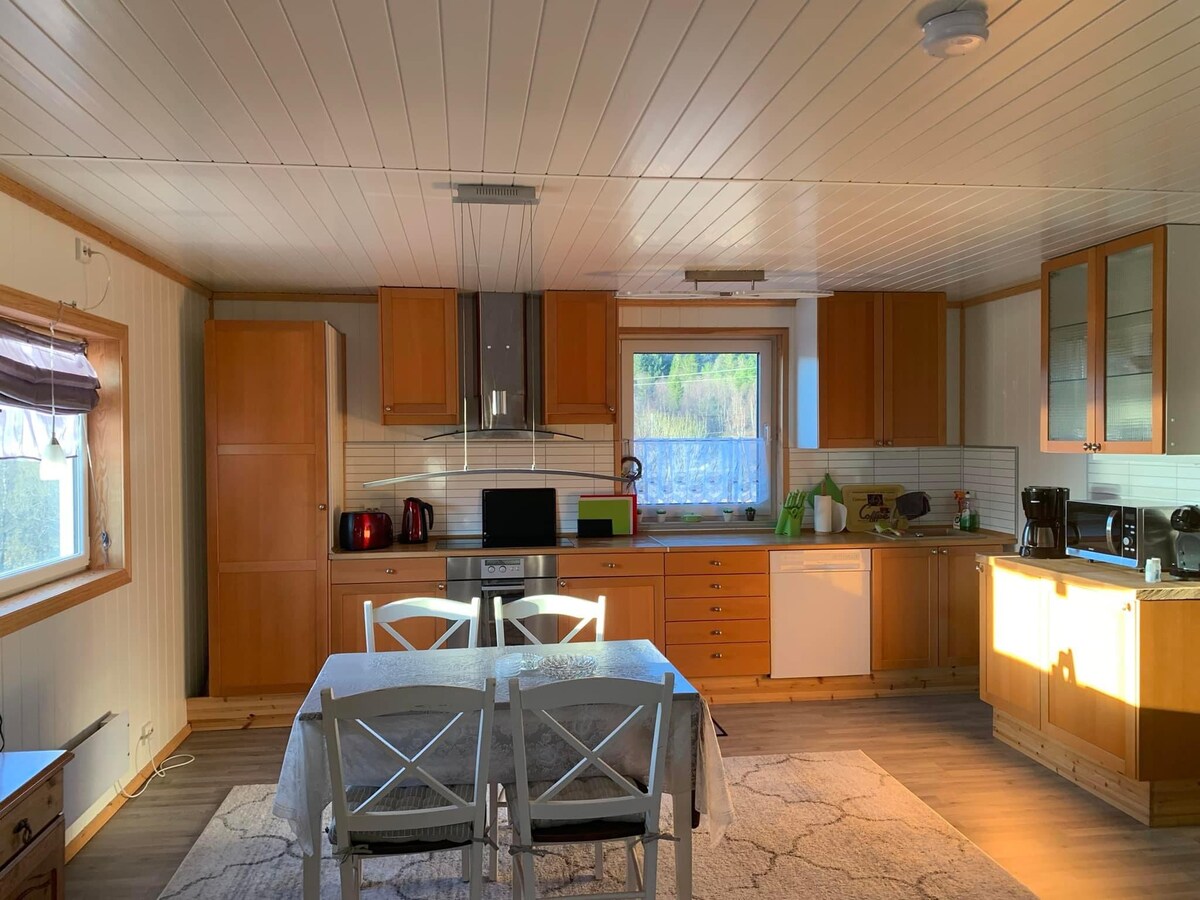 노르웨이 자연을 탐험하는 것을 좋아하거나 소파에 누워 자연을 바라보고 싶은 사람에게 완벽한 장소입니다. 오두막 바로 옆을 흐르는 강은 카누를 타기에 안성맞춤입니다. 그리고 강변에서 새, 무스, 기타 야생동물을 정기적으로 볼 수 있습니다. 좋은 하이킹 지역, 스키 트랙, 스노모빌 트레일도 있습니다. 이 오두막은 시내 중심가에서 18km 떨어진 헤링겐에 있습니다. 와이파이, TV, 화장실, 난방 바닥, 식기 세척기, 세탁기 등 모든 기본 시설이 갖춰져 있습니다.