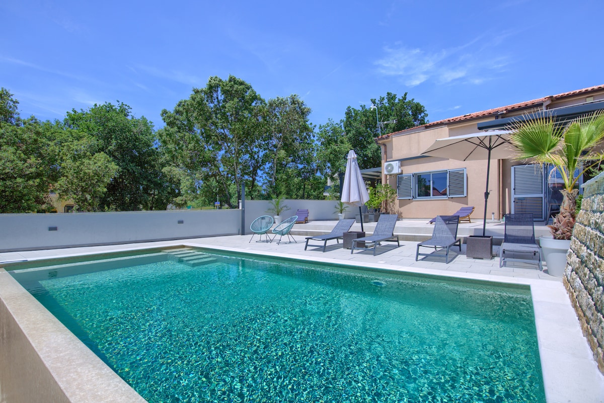 로비뇨 – 이스트리아에서 10km 거리에 있는 고요한 마을 베일에 자리한 새로운 디자이너 빌라 벨라 니콜에서 프라이버시, 평온함, 휴식의 전형을 만나보세요. 전용 10미터 온수 수영장을 즐겨보세요. 주변에 식료품점, 식당, 약국이 있습니다. 깨끗한 해변은 무료 캠프 몬 페린 게스트 카드와 해변에서 50m 거리에 있는 무료 주차장으로 9km 거리에 있습니다. 해변 입장 무료.