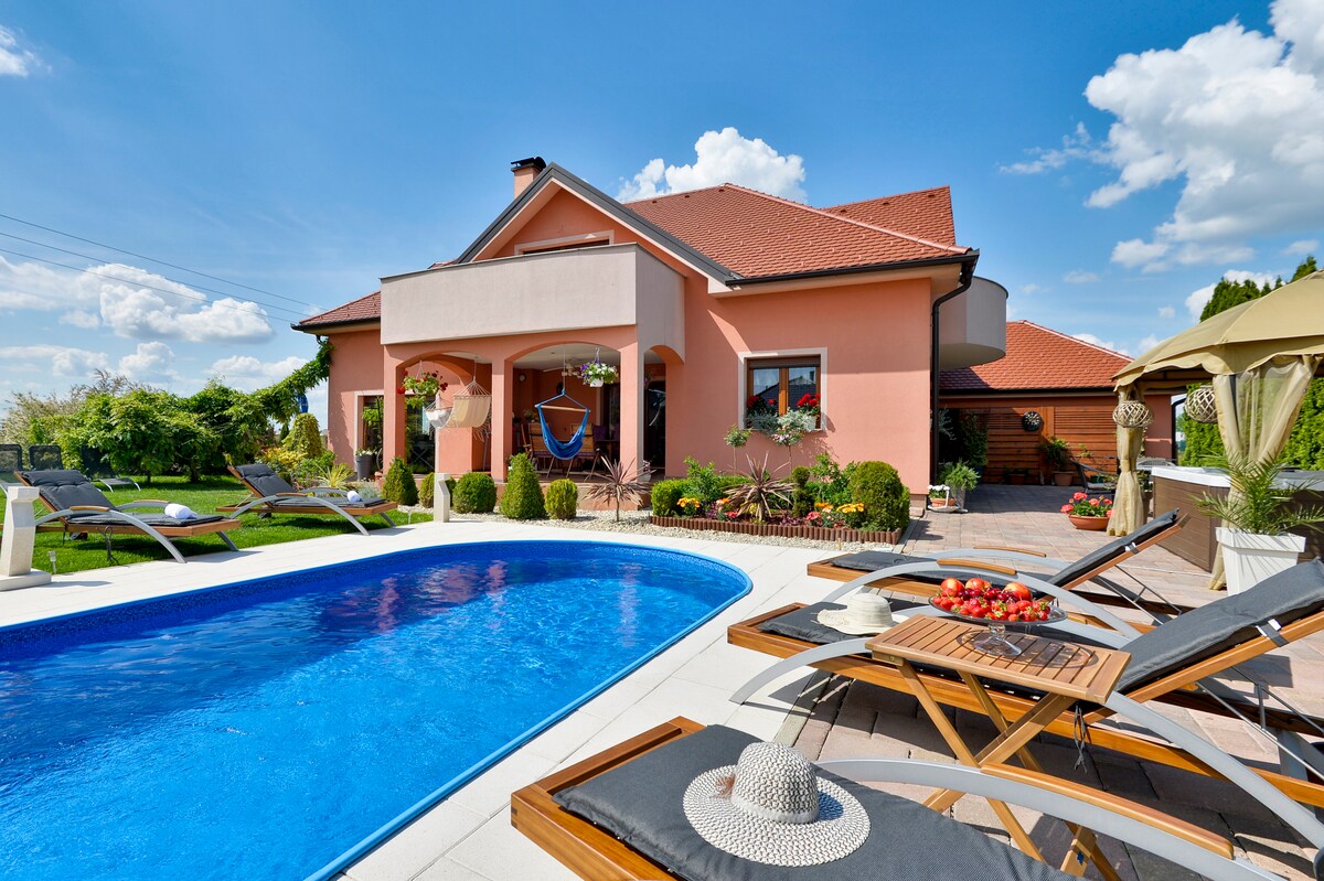 Privatni apartman u prekrasnoj vili nudi potpuni luksuz i opuštanje: privatni bazen, wellness oazu s komfornim keramičkim jacuzzijem, privatno sunčalište, uređenu okućnicu s ležaljkama i garniturom za sjedenje. Uživajte u miru, prirodi i potpunoj privatnosti. Napomena: prethodnih godina iznajmljivali smo cijelu vilu za 10 gostiju. Ove sezone za rezervacije je otvoren samo jedan privatni wellness apartman sa 1 sobom ,sa privatnim bazenom i privatnim wellness sobom koju koriste samo gosti.