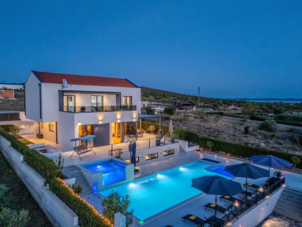 브라나 호수와 아드리아해가 내려다보이는 빌라 아우라나. 새로 지어진 빌라는 첫 번째 해변에서 불과 5km 떨어진 조용한 위치에 있으며, 근처에 자다르, 시베니크, 비오그라드 마을이 있습니다. 모든 침실과 거실에는 에어컨이 설치되어 있습니다. 우선, 수영장은 넉넉한 크기이며, 원하는 경우 난방할 수 있습니다. 맛있는 식사를 준비할 수 있는 여름 주방과 그릴, 막내 게스트는 어린이 놀이터나 플레이스테이션에서 즐거운 시간을 보낼 수 있습니다. 4대의 주차 공간을 선택할 수 있습니다.