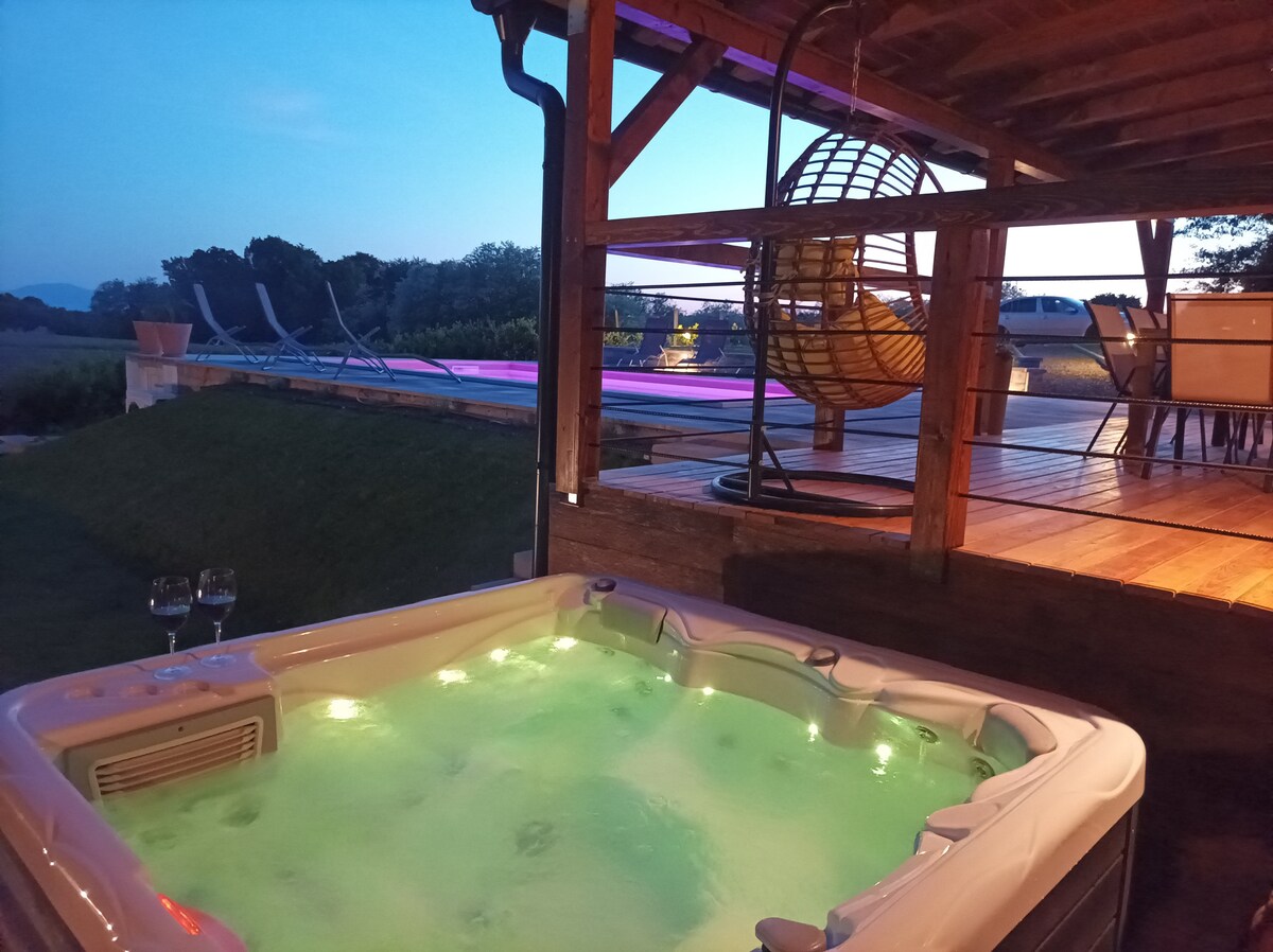 웰니스 빌라 실렌테는 멋진 자연과 평온함으로 둘러싸인 아름다운 언덕에 위치해 있습니다. 빌라는 두 개의 건물로 구성되어 있습니다. 갤러리에 침실, 거실, 주방, 욕실이 있는 별장과 핀란드식 사우나, 크로모테라피가 있는 마사지 수영장, 마사지 제트가 있는 샤워 시스템, 나무 데크 의자가 있는 별도의 웰니스 공간으로 구성되어 있습니다. 숙소에서 무료 전기 자전거를 이용하실 수 있습니다. 에너지를 충전하고 메지무르제에 오신 것을 환영합니다!