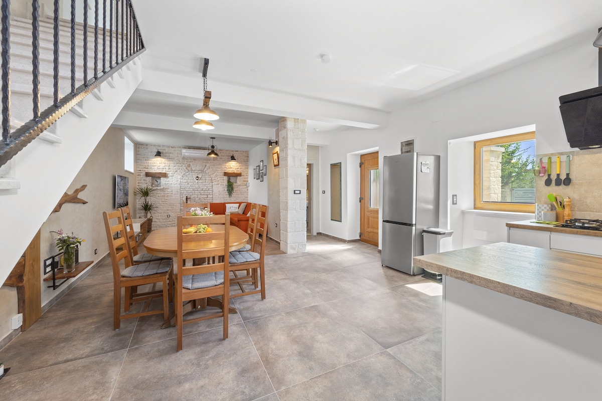 가족이 많고 가족이나 친구와 즐거운 시간을 보낼 수 있는 꿈의 휴가를 기대하고 계신가요? 여기가 맞는 숙소입니다. 130년 전통의 매력적인 이스트리아 토착 석조 주택은 현대적이고 쾌적한 방식으로 이스트리아 문화유산을 즐길 수 있도록 사랑으로 복원되었습니다. 현대적인 인테리어 디자인과 전통적인 이스트리아 스톤의 독특한 조합은 지중해의 평화와 휴식의 분위기를 선사합니다.