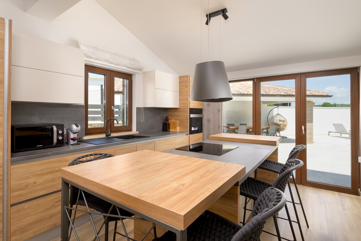 중앙 이스트리아에 위치한 전용 수영장과 정원이 있는 매력적이고 새로 지어진 이스트리아 빌라인 빌라 렌테는 편안한 휴가를 위한 현대적인 디자인과 전통적인 이스트리아의 매력을 완벽하게 조합한 곳입니다. 수영장과 정원 옆의 테라스에서 휴식을 취하거나 맛있는 바비큐를 즐겨보세요. 오픈 스페이스 현대식 거실은 쾌적한 식당과 와인 냉장고와 제빙기가 완비된 현대식 주방으로 이어집니다. 각 객실에는 와이파이(스타링크)와 대형 LCD TV가 있어 최신 정보를 확인할 수 있습니다.