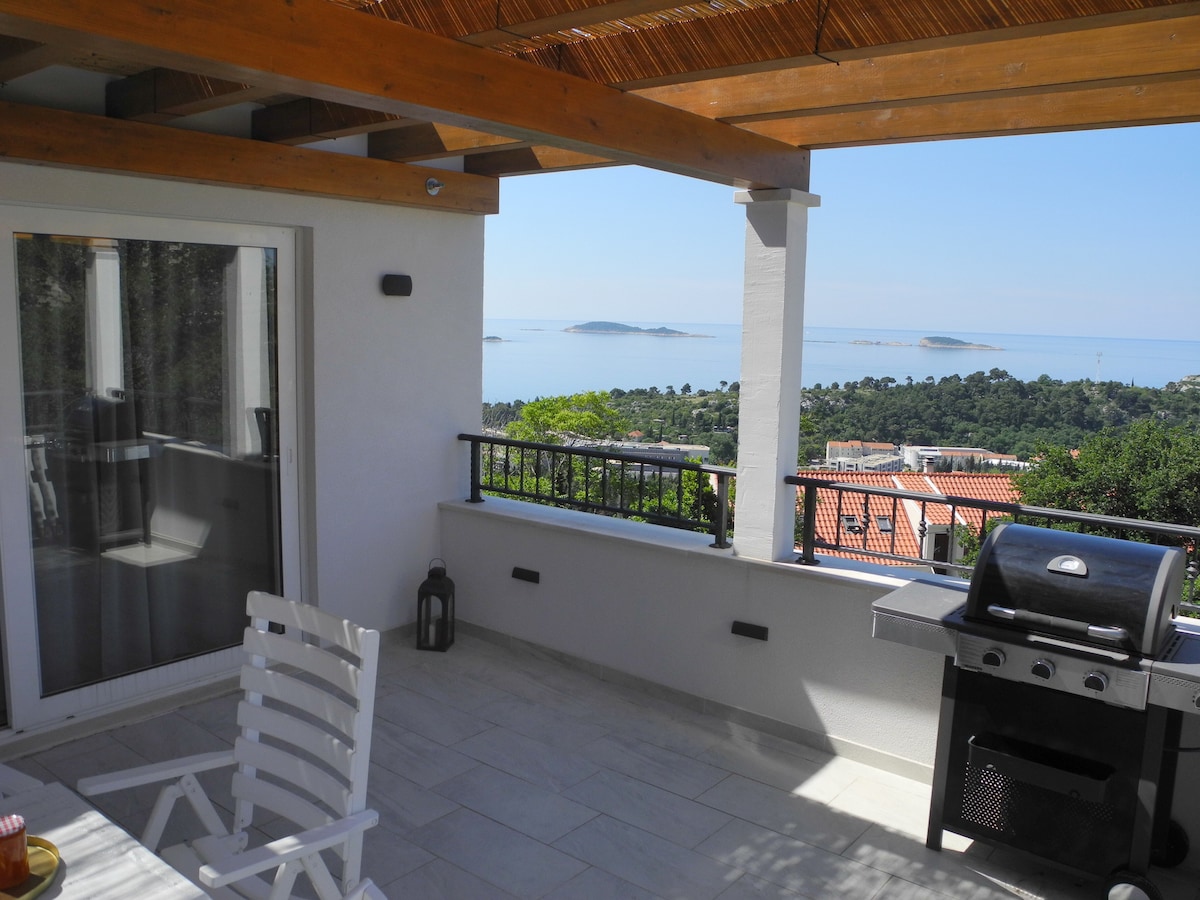 🔹 check-in time 15:00 - 23:30 🔹 check-out time 06 :00- 10:00 Novorenovirani apartman Stella nalazi se na prvom katu privatne Ville . Apartman je oaza prirode i mira gdje možete uživati u potpunoj privatnosti . Na odličnoj lokaciji na samo 20 minuta vožnje automobilom od centra grada i zračne luke . Prostrani dvosoban apartman s zadivljujućim pogledom na more i mir prirode sigurno je mjesto gdje ćete provesti kvalitetan odmor .