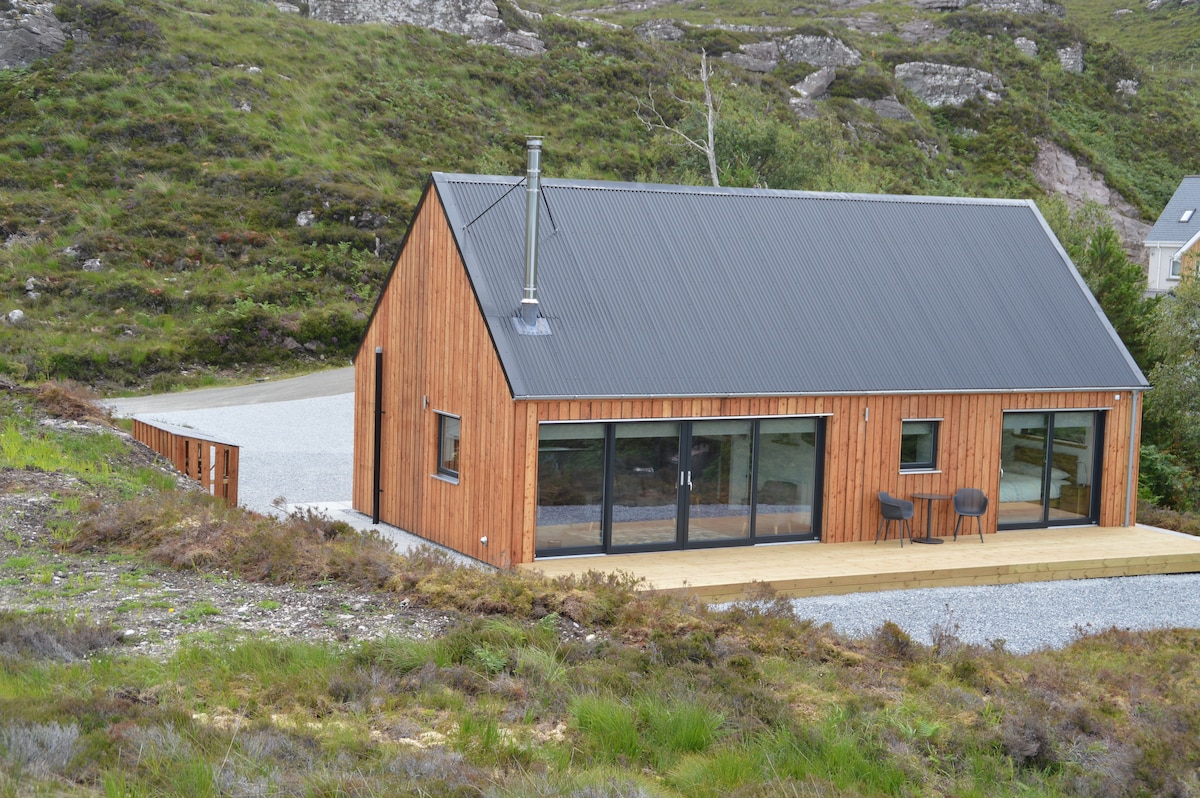 A light and airy timber built chalet with a modern, warm interior offering a real home from home. It sleeps a max of 2 people. Enjoy the view across the bay and a 12 minutes walk to the local, Badachro Inn. The property is located in the grounds of Badachro Distillery, a fully working distillery and is 20m from the main house. Join a tour and let us tell you all about our delicious artisan Spirits. Dogs allowed by prior arrangement. Car charger is available to use by arrangement (charges apply)