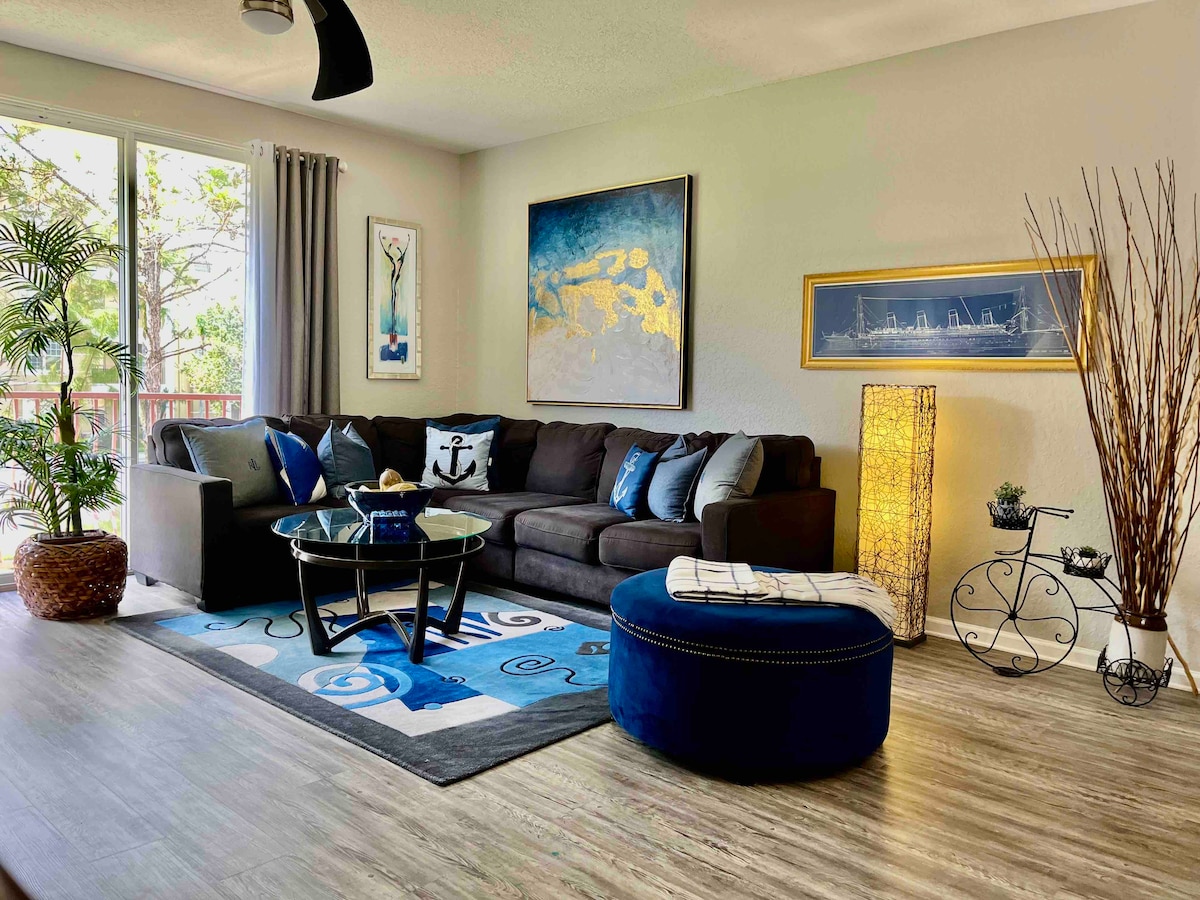 넓은 침실 3개/욕실 2개가 있는 4층 코너 콘도. 6명까지 숙박 가능. 좌석이 있는 멋진 발코니. 수영장/클럽하우스와 가까움. 에픽, OCCC, 슈퍼마켓, 월그린, 관광지 및 레스토랑 옆에 있습니다. 유니버설 스튜디오, 디즈니, 아쿠아티카, 디스커버리 코브 및 씨월드까지 몇 분 거리입니다. 새로운 바닥재, 가구 및 인테리어로 업그레이드되었습니다. 여러 대의 차량을 위한 무료 리조트 편의시설 및 무료 셀프 주차. 반려견 동반 가능, 1박당 반려동물 수수료.