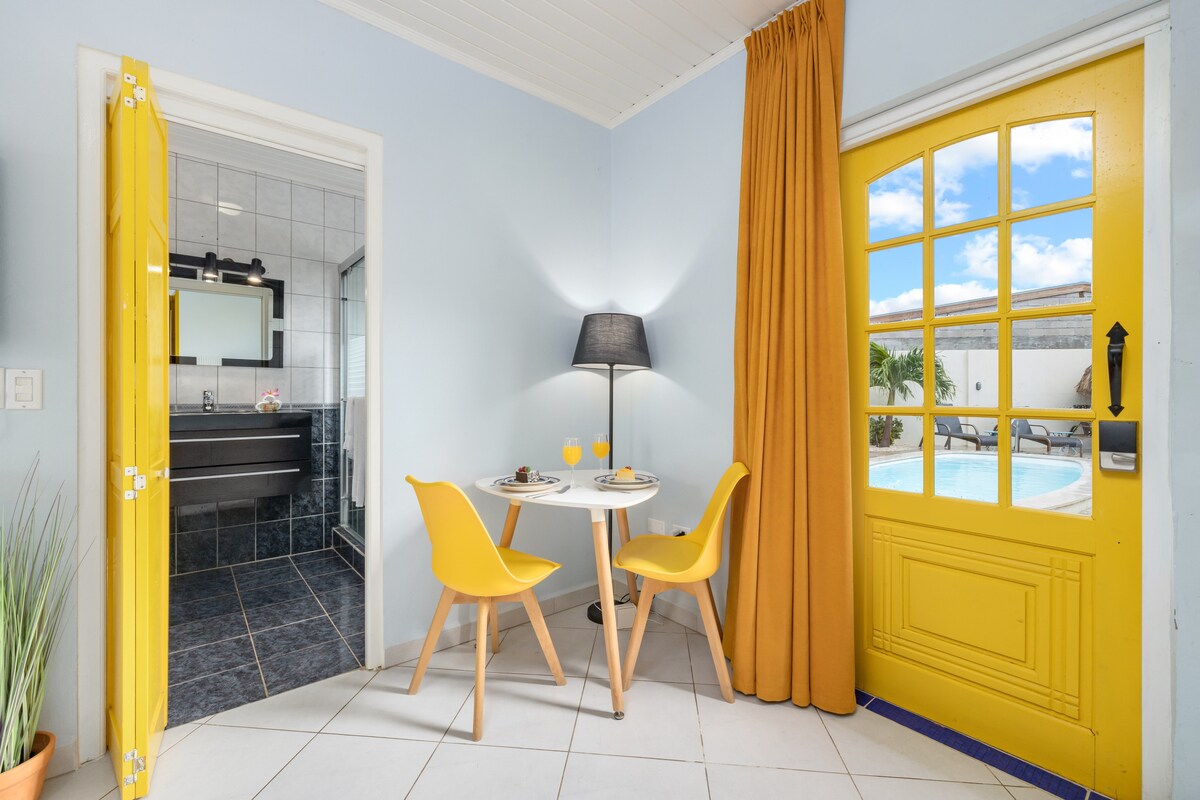 Charming & Cozy Studio in Aruba! 🌴 Perfect for solo travelers or couples, our stylish studio apartment offers a comfortable retreat for up to 2 guests. Thoughtfully designed, the space features a fully equipped kitchen, a cozy sleeping area, a modern bathroom, air conditioning, and a Smart TV with Wi-Fi—ensuring a relaxing and convenient stay.