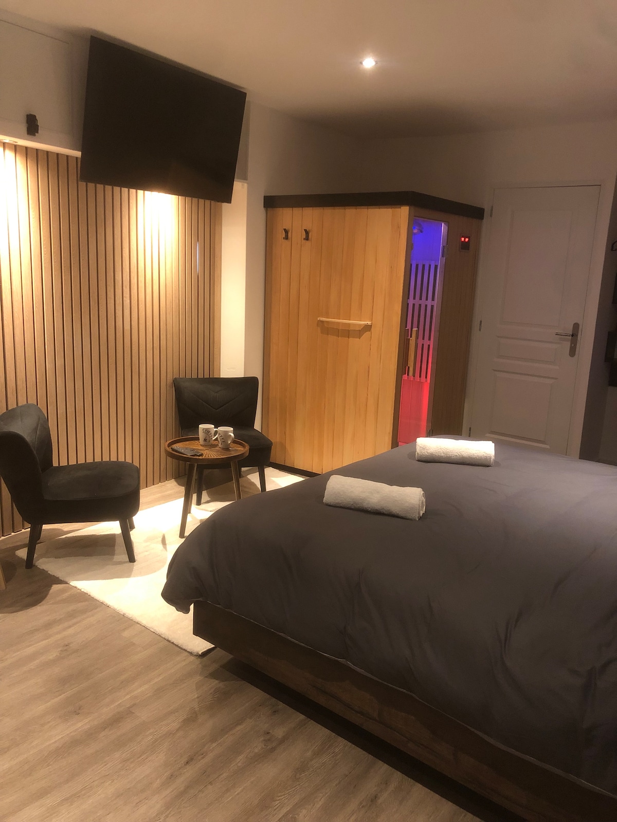 - 하이퍼 센터 "En Apparte" 에 위치한 3성 가구가 완비된 관광 숙소로 적외선 사우나, 킹 사이즈 침대, 하이드로 마사지 샤워기가 있습니다. - 사우나 (크로모테라피, 블루투스, USB, 라디오) - 하이브리드 매트리스 "엠마" 가 있는 킹사이즈 침대. USB, USB/c, 내장 LED - 이동식 테이블이 있는 업무 공간/식사. - 아침 식사 공간/주방 냉장고, 오븐/전자레인지, "L '또는" 커피 메이커 ", 주전자, 호브 -스마트 스마트TV - 창문 없는 필터 -금연 숙소