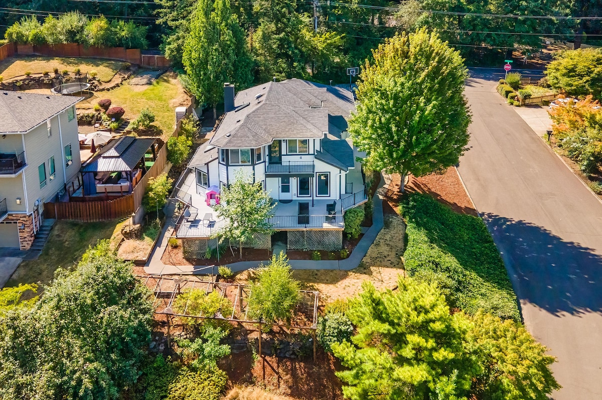 Escape to our mountain luxury home nestled on 20 wooded acres w/ wild life. Enjoy 2000 sqft in a secluded setting with full views of Mt. Hood. Private 2500 sqft covered patio w/ BBQ. Kitchen and dining that flows through a moveable window wall for indoor/outdoor living. Media room with powered reclining seats w/ tiered theater seating. Laundry. 10 minutes to dining, entertainment, or shopping. 45 minutes to Mt. Hood recreation (skiing, hiking, kayaking). Sofa bed in mediaroom. Bunk bed avail